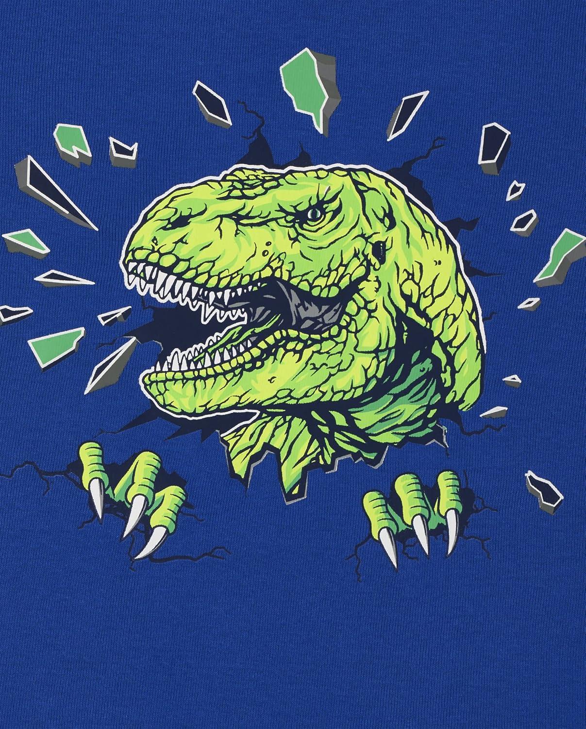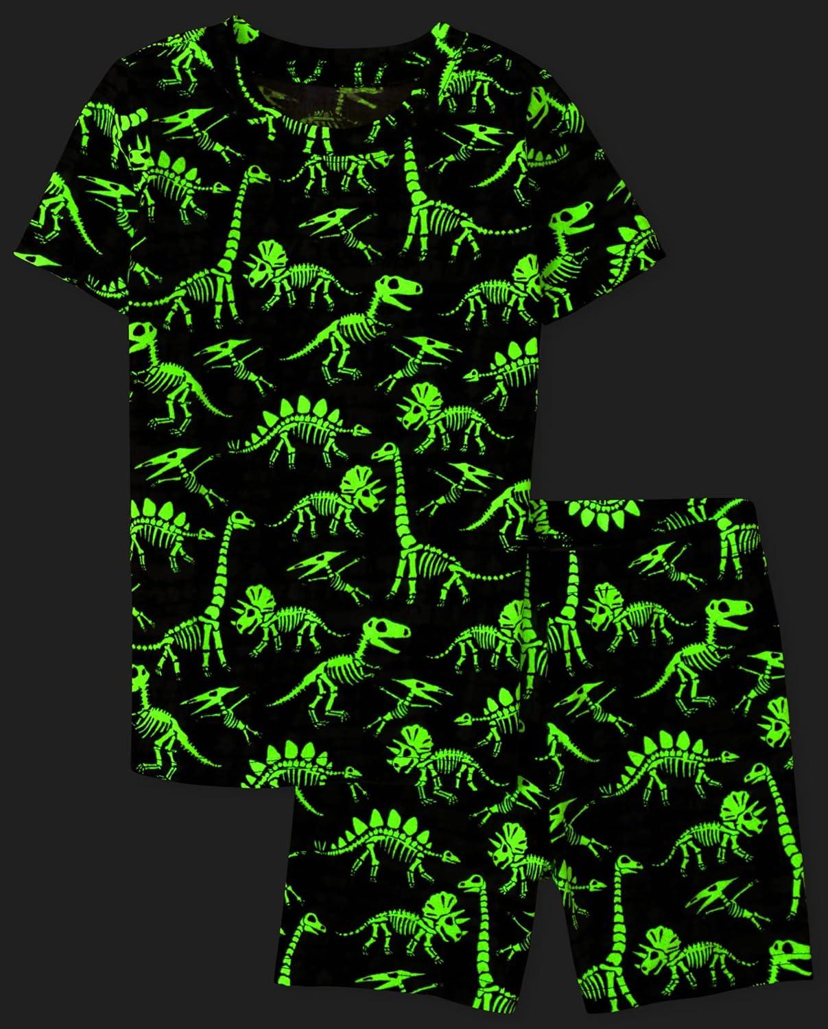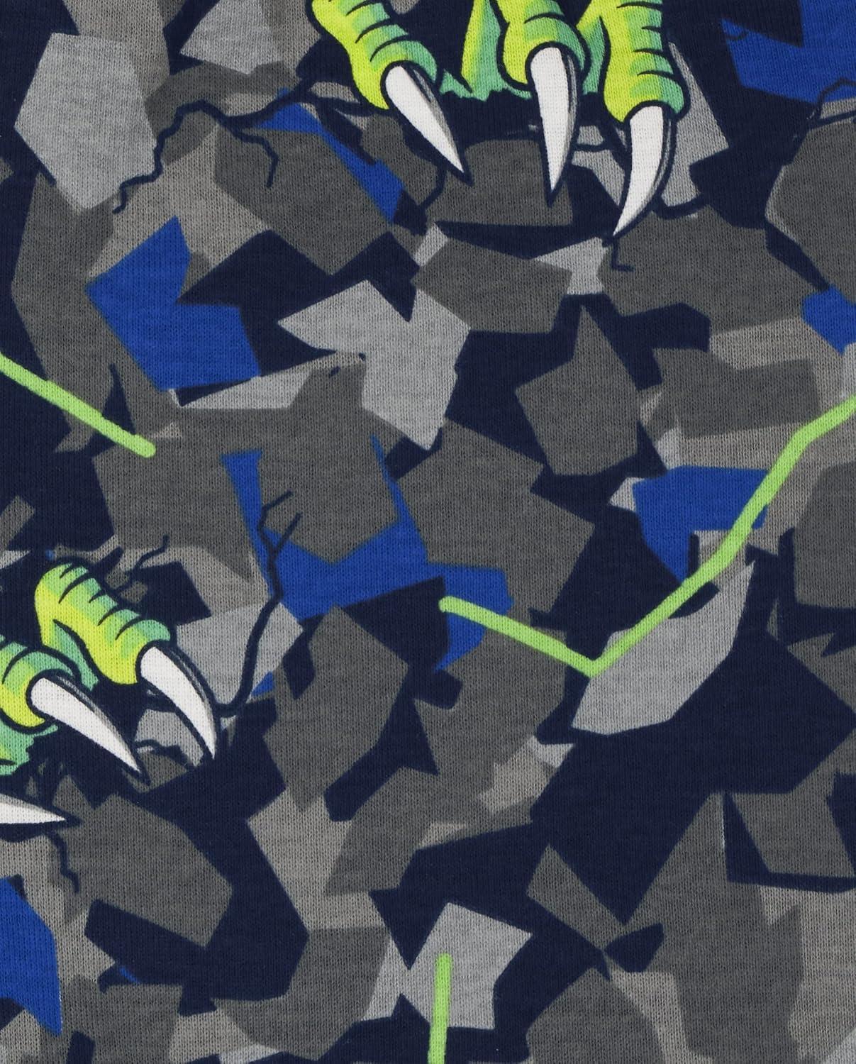The Children’s Place boys Short Sleeve Top and Shorts Snug Fit 100% Cotton 2 Piece Pajama Set(Camo/Dino Glow 2-pack)