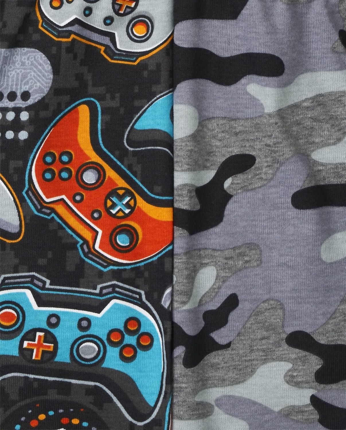The Children’s Place boys Short Sleeve Top and Shorts Snug Fit 100% Cotton 4 Piece Pajama Set(Play More Gamer 2-pack)