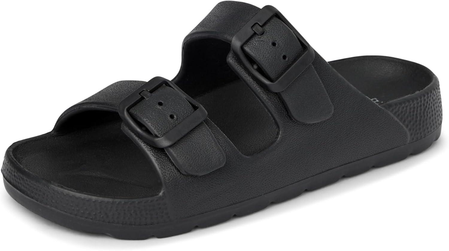 The Children’s Place boys Boys Everyday Slip on Double Buckle Slide Sandals(Black)