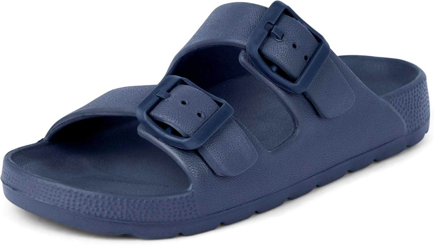 The Children’s Place boys Boys Everyday Slip on Double Buckle Slide Sandals(Navy)
