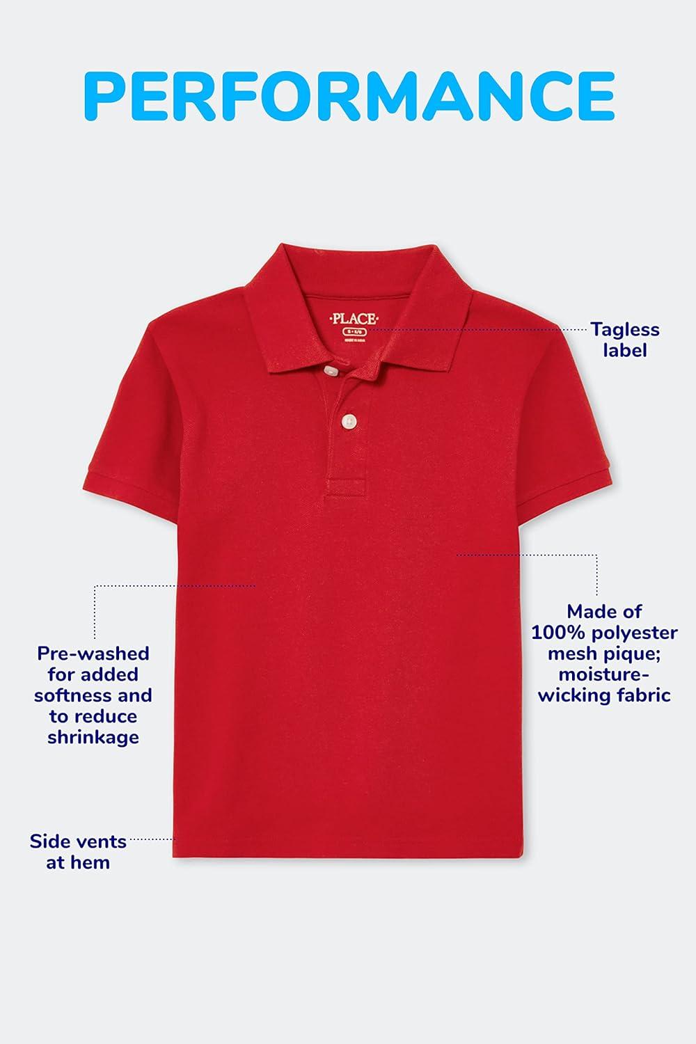 The Children’s Place Boys Multipack Short Sleeve Performance Polos(Nautico/Classic Red/White 3-pack)