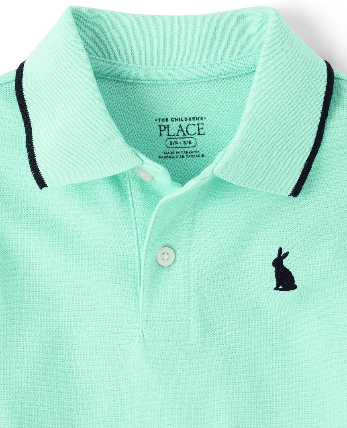 The Children’s Place Boys’ Uniform Short Sleeve Pique Polo(Bunny Embroidered Aqua)