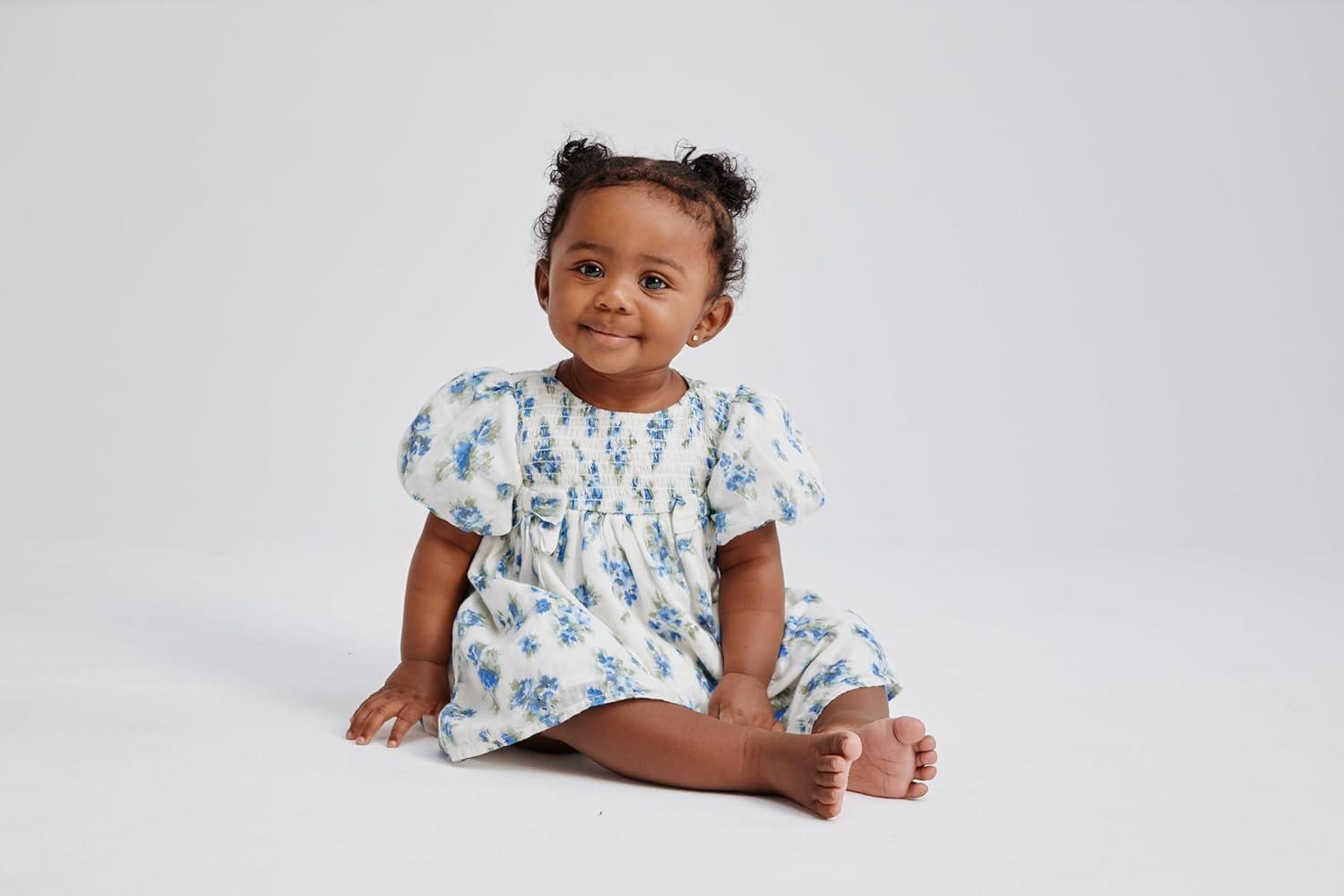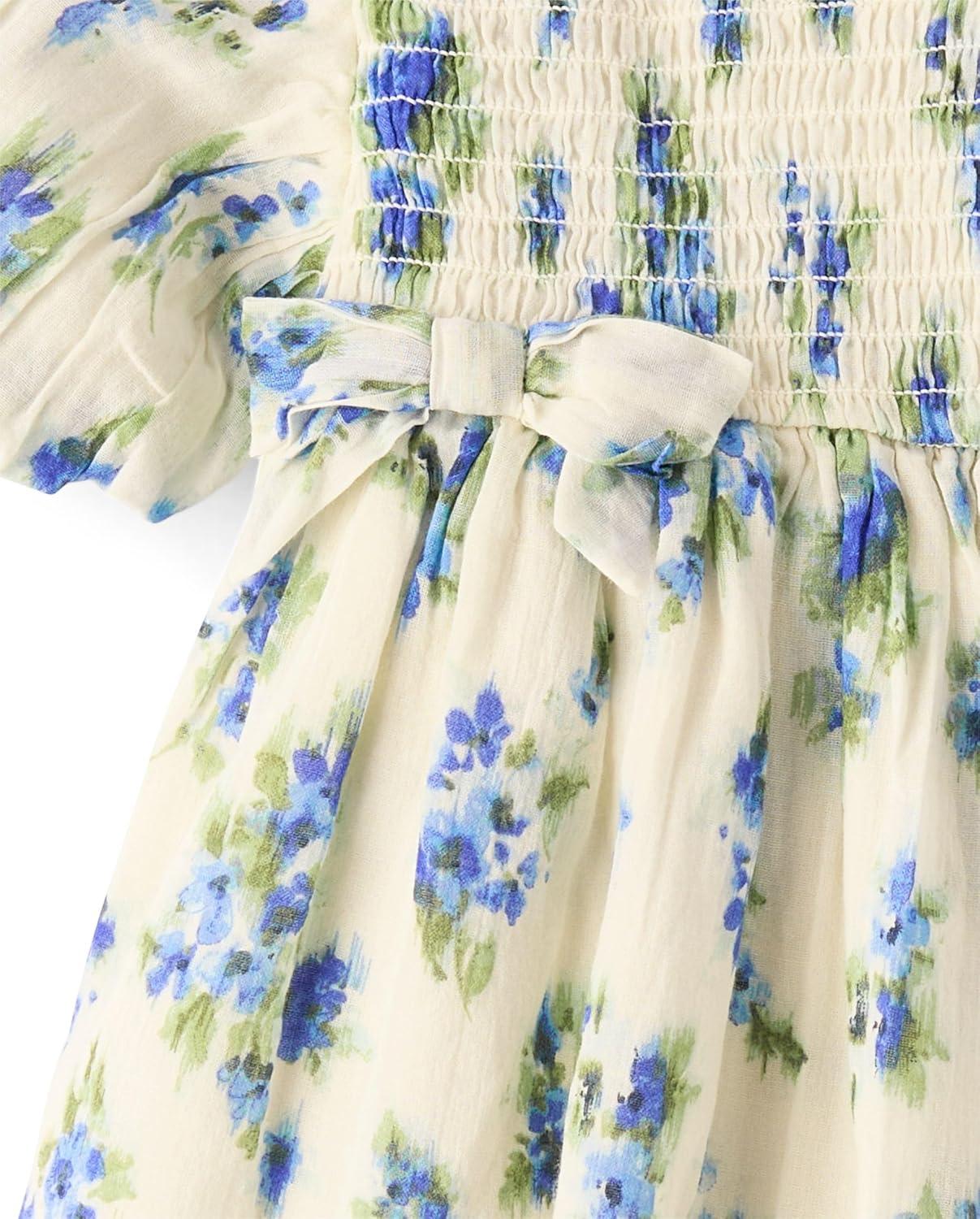 The Children’s Place,Baby-Girls,and Newborn Casual Short Sleeve Dress with Diaper CoverWhite Daisy Bunny,12 Months,18 Months(Blue Floral)