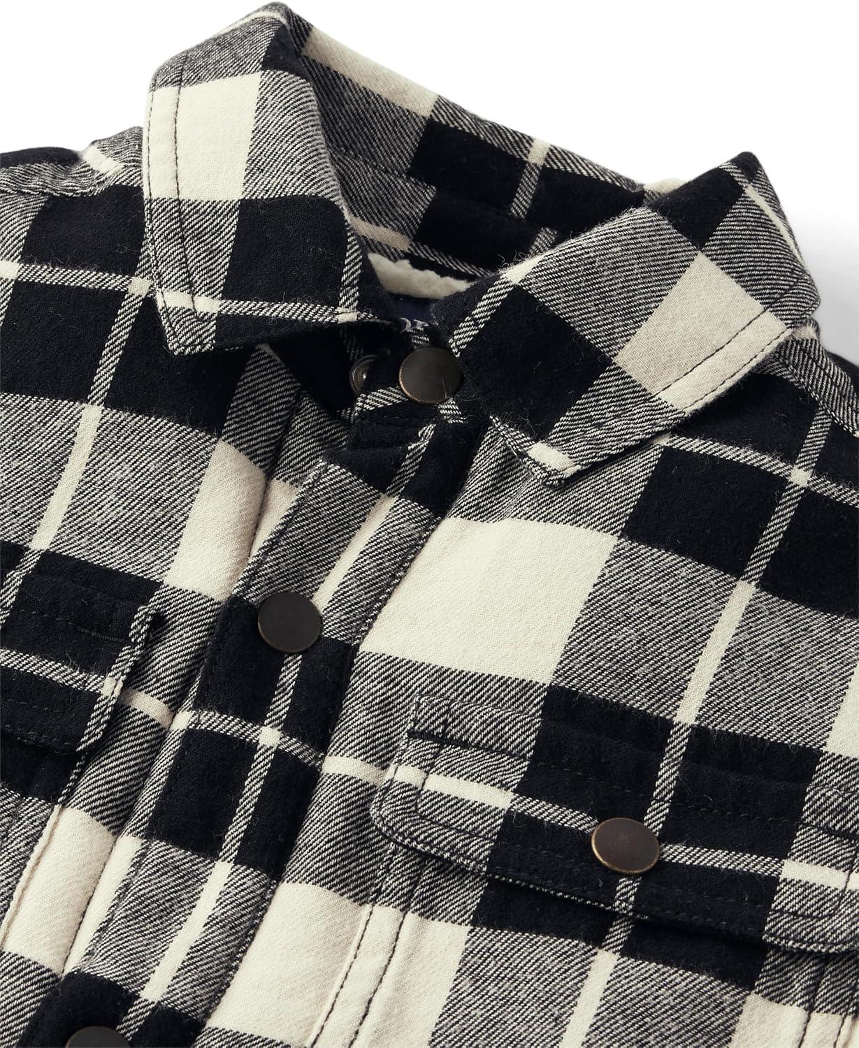 The Children’s Place Boys’ Sherpa Lined Shirt Jacket(White Plaid)