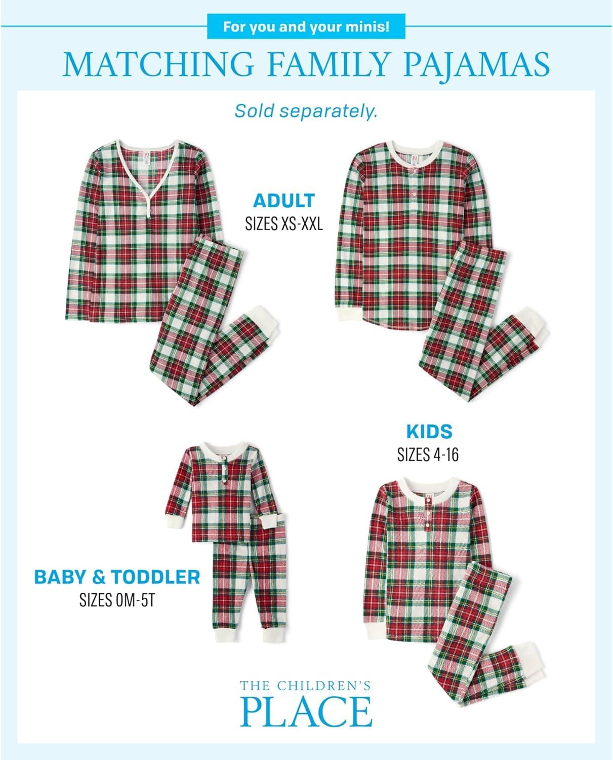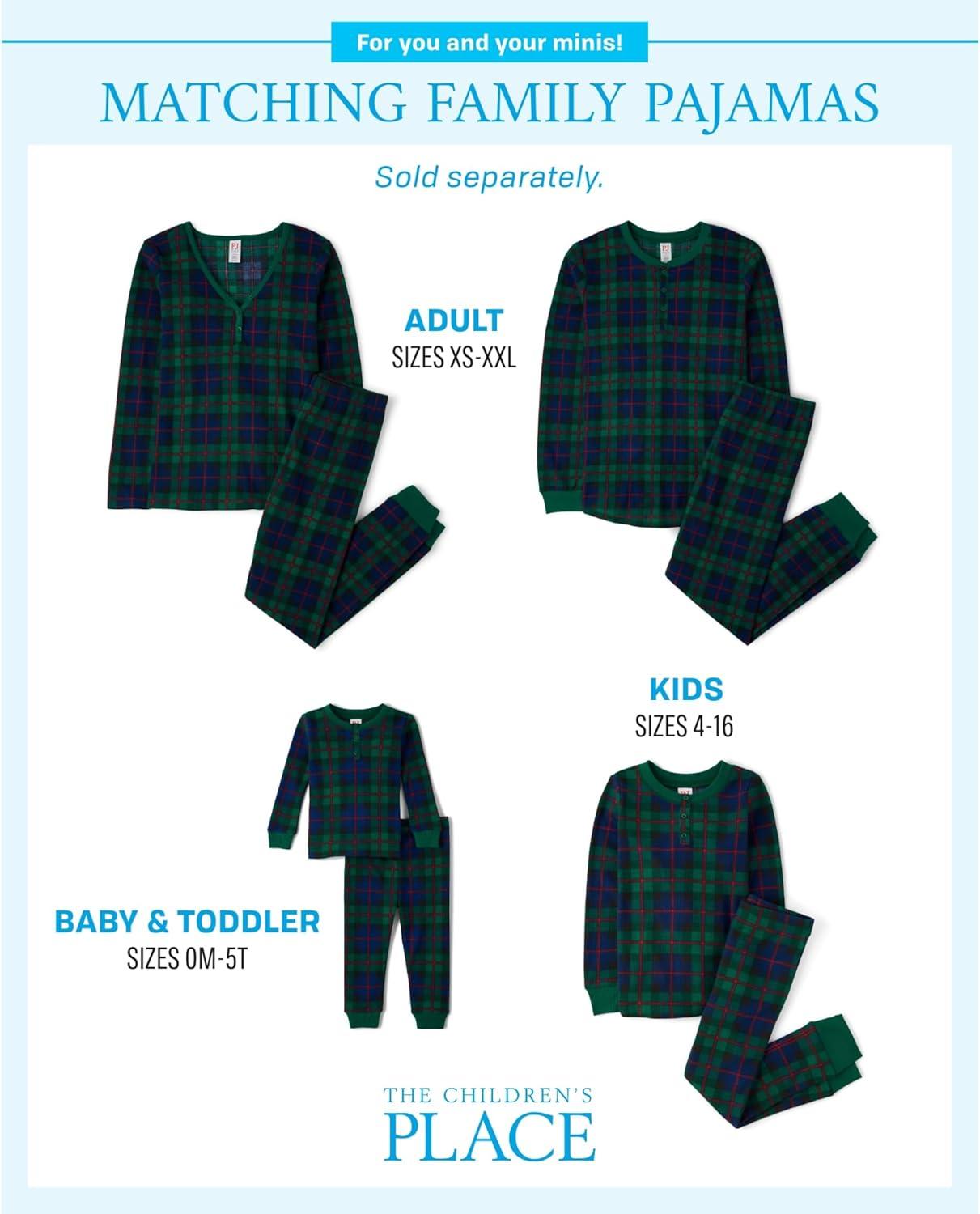 The Children’s Place Family Matching, Plaid Waffle 2 Piece Pajama Sets(Green Tartan)