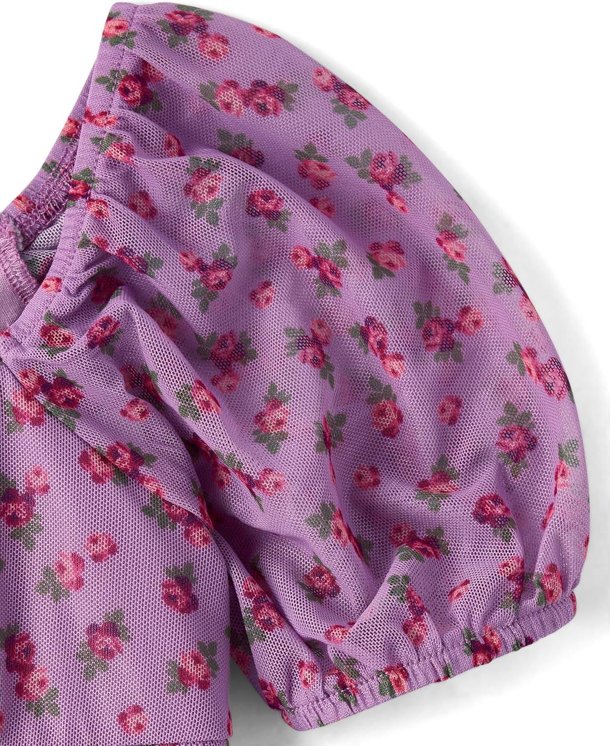 The Children’s Place,Short Sleeve Fashion Dress(Petal Purple Tiered)