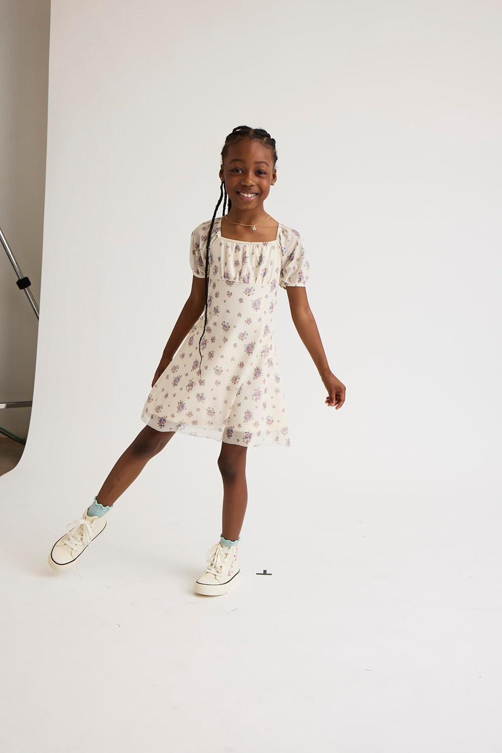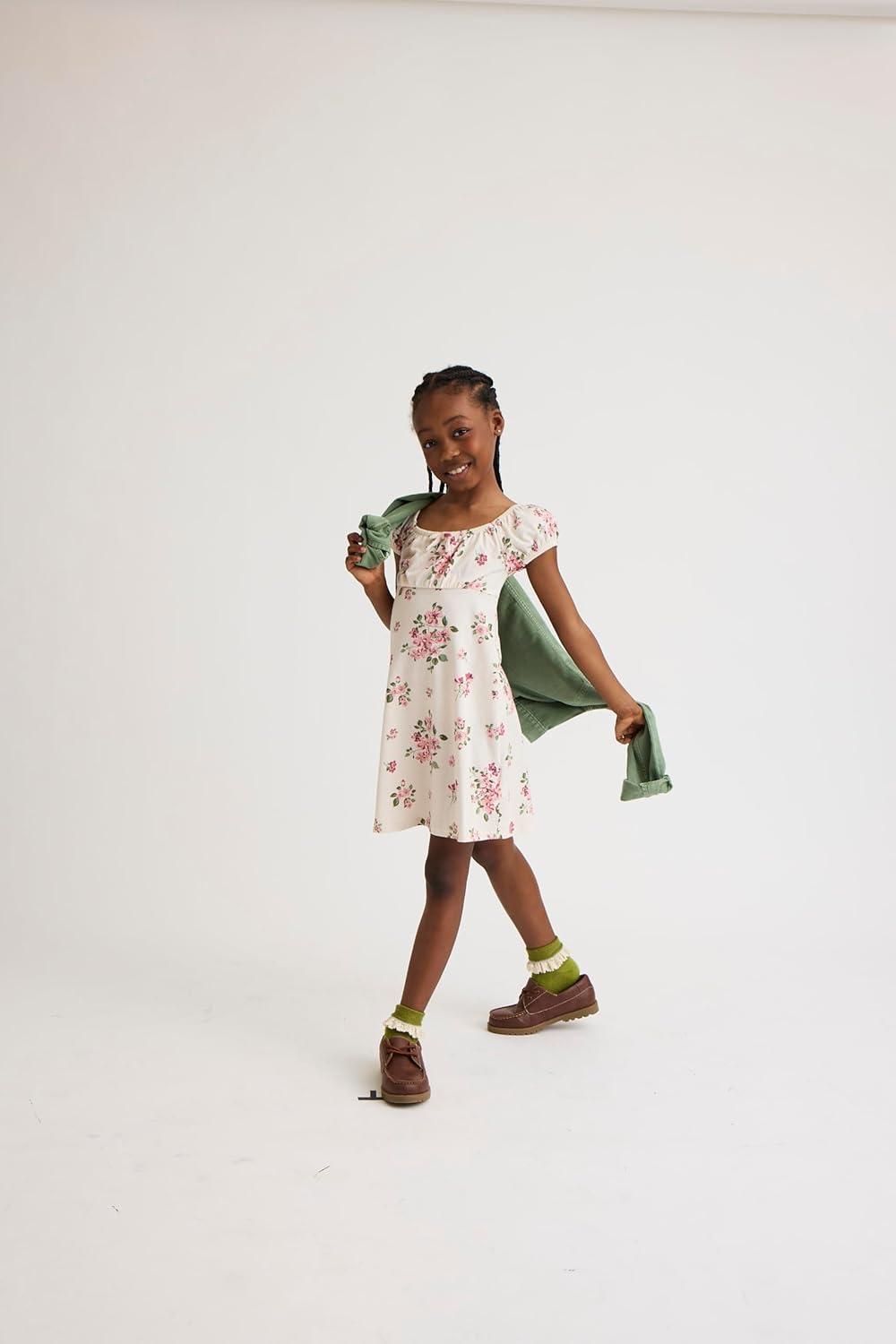 The Children’s Place,Short Sleeve Fashion Dress(Irish Cream Floral)