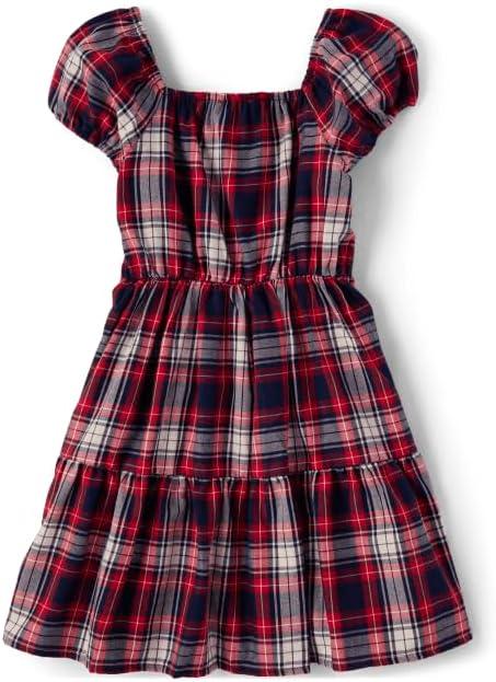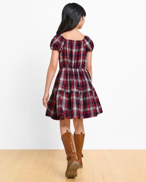 The Children’s Place,Short Sleeve Fashion Dress(Ruby Holiday Plaid)