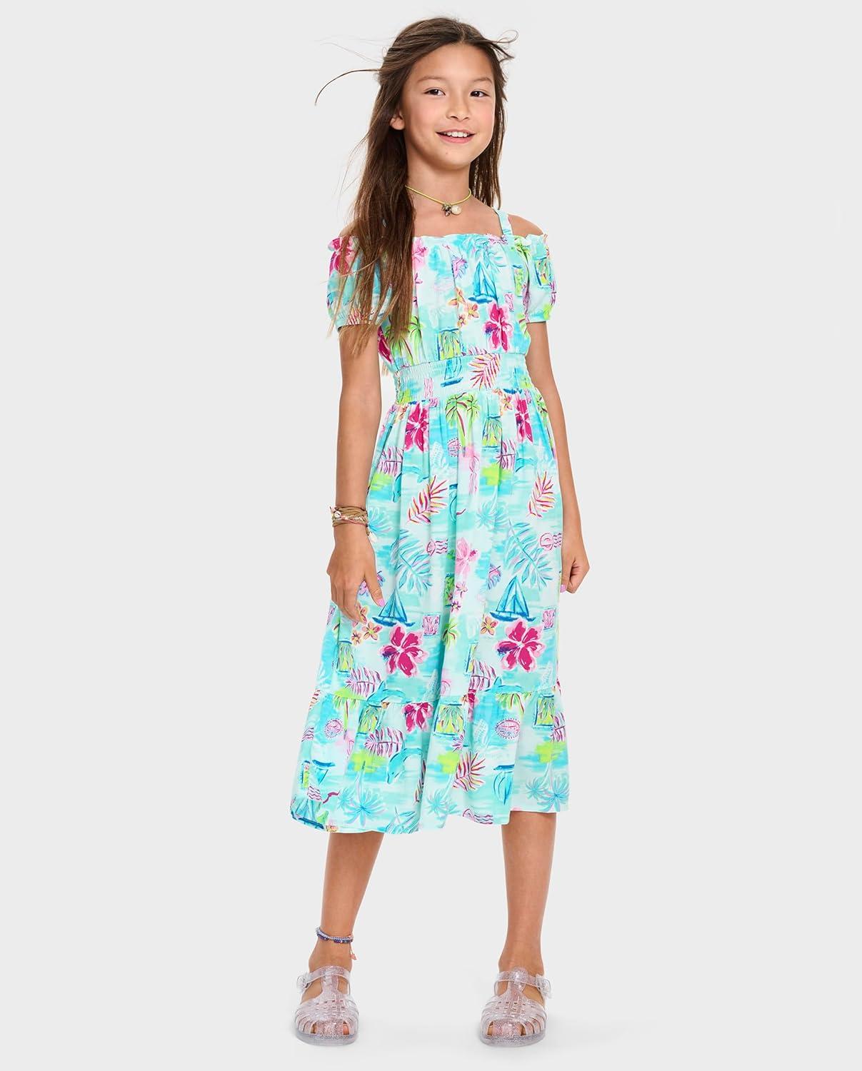 The Children’s Place,Short Sleeve Fashion Dress(Tropical Prints)