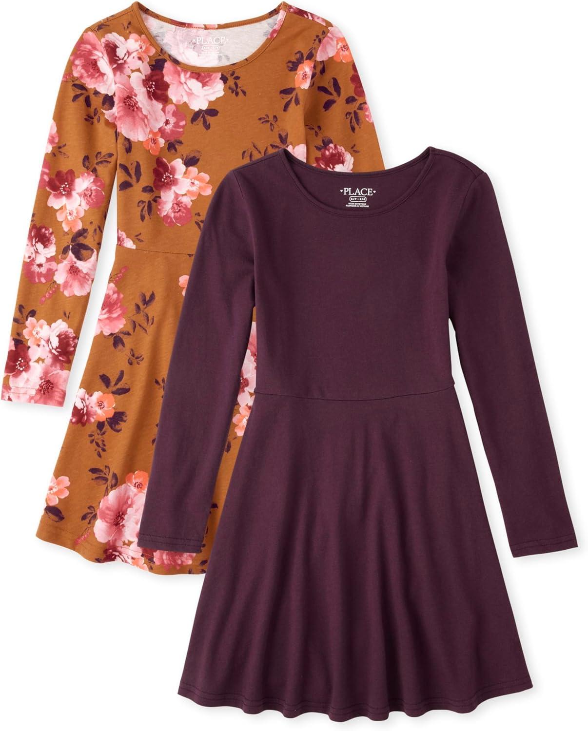 The Children’s Place Girls Printed Skater Dress, Long Sleeve(Cake Floral_honeycomb | Sm Paulina Floral_hot Spice 2-pack)