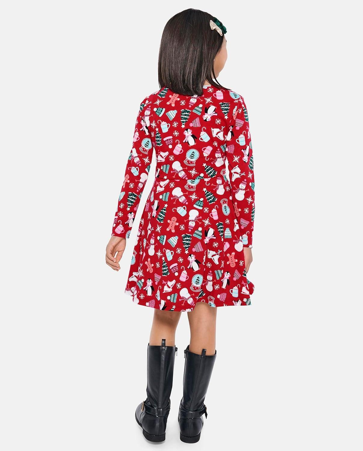 The Children’s Place Girls Printed Skater Dress, Long Sleeve(Holiday Cheer)