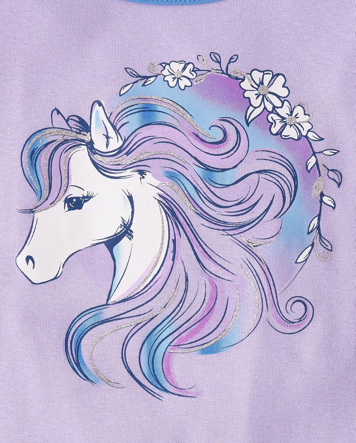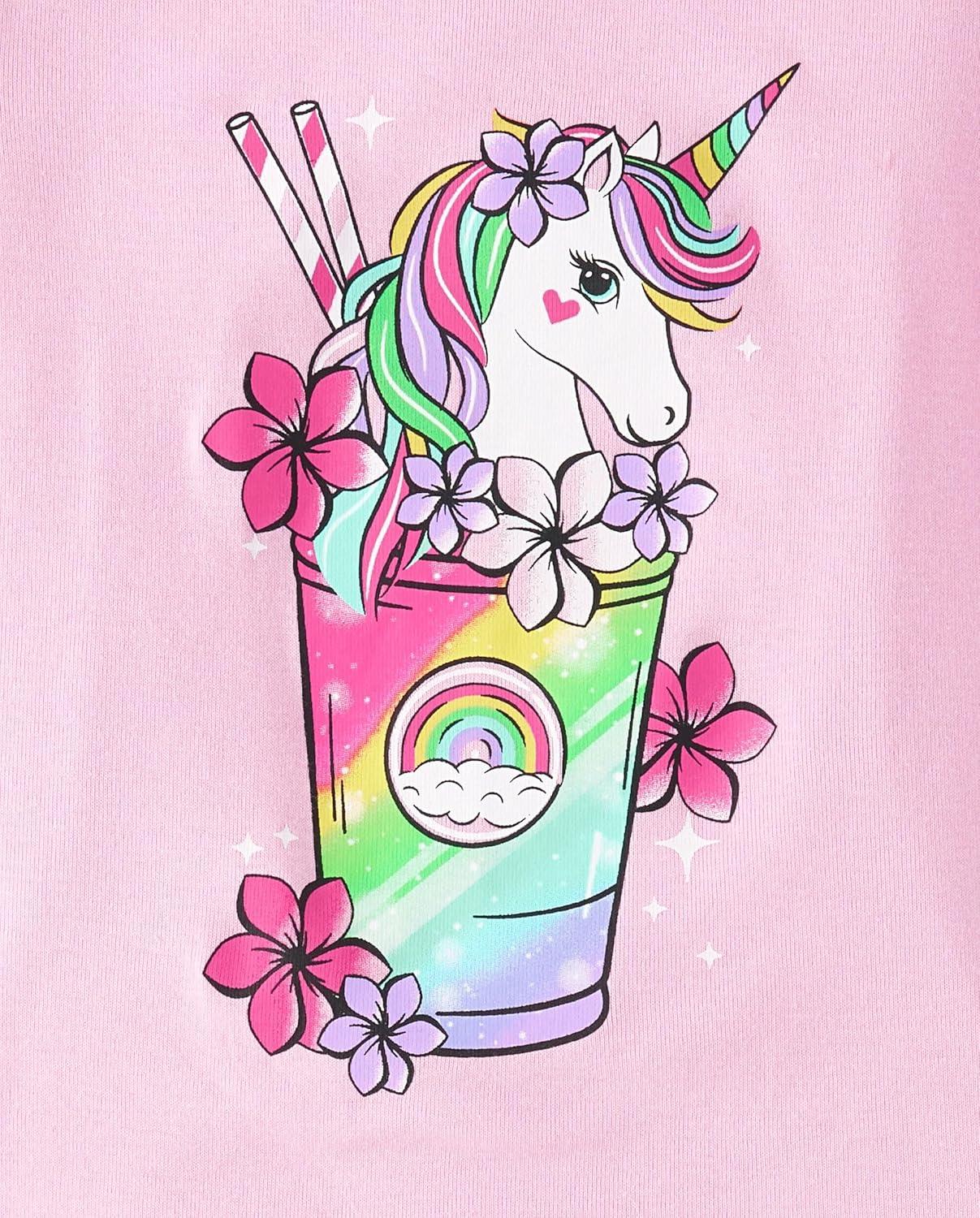 The Children’s Place Girls’ 100% Cotton Sleeve Top and Shorts 2 Piece Pajama Set(Unicorn Shake)