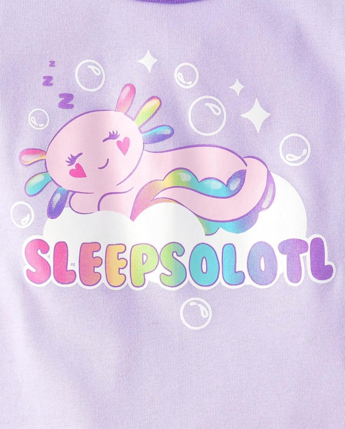 The Children’s Place Girls’ 100% Cotton Sleeve Top and Shorts 2 Piece Pajama Set(Sleepsolotl)