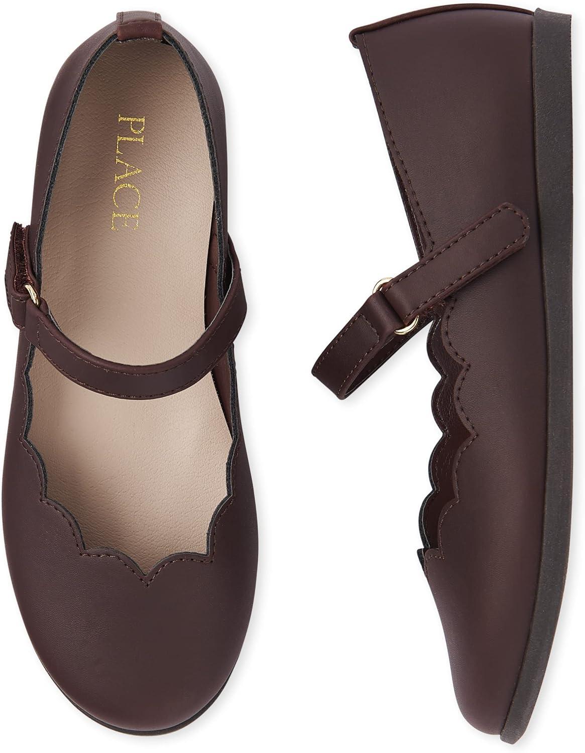 The Children’S Place Girls Closed Toe Maryjane Flats(Dk Brown Scalop)
