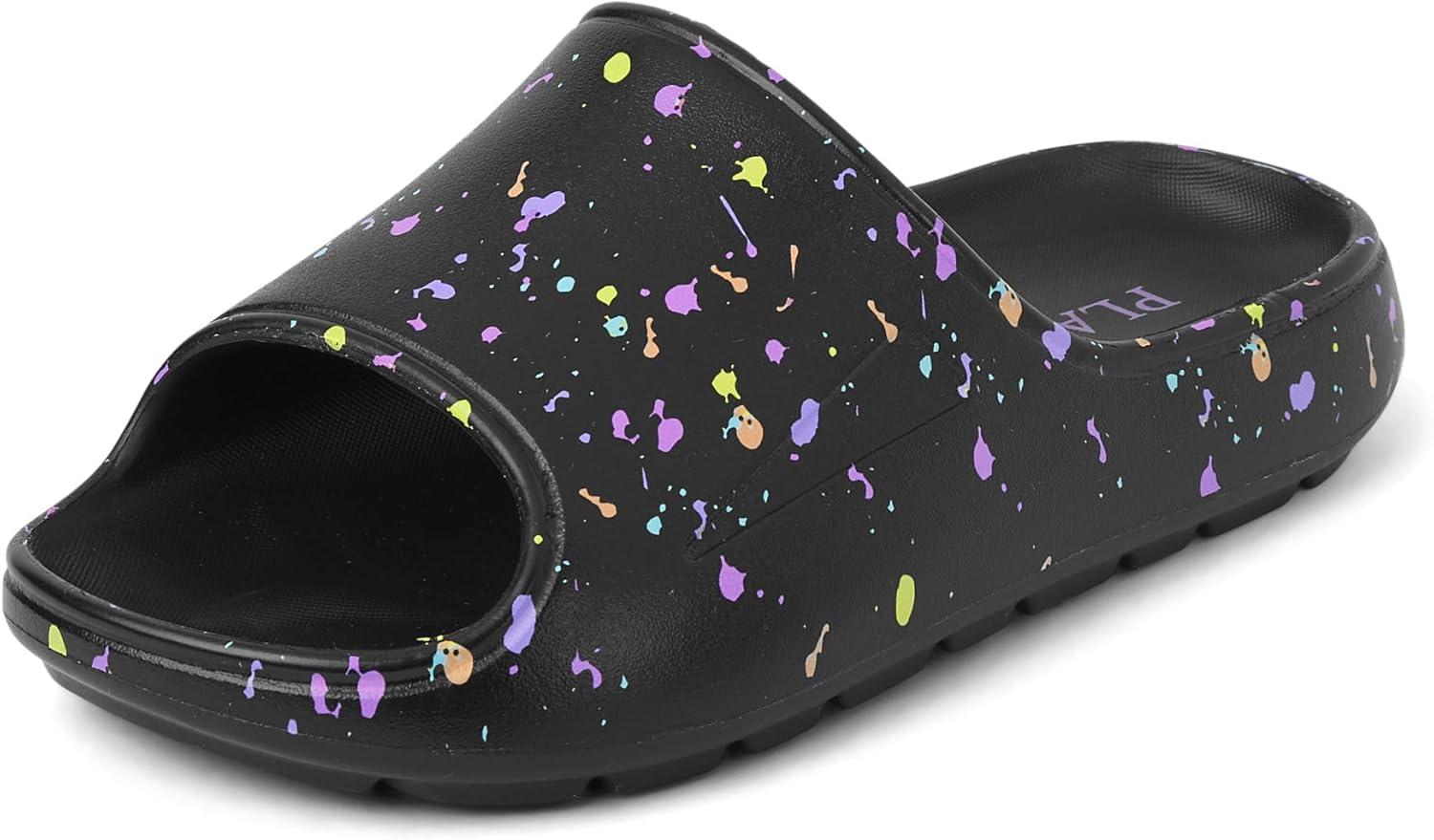 The Children’s Place Girls Everday Slip on Slide Sandals(Black Paint Splatter)