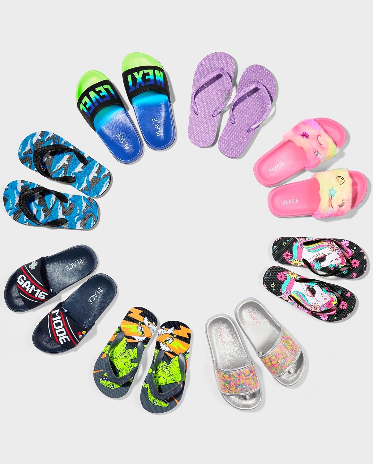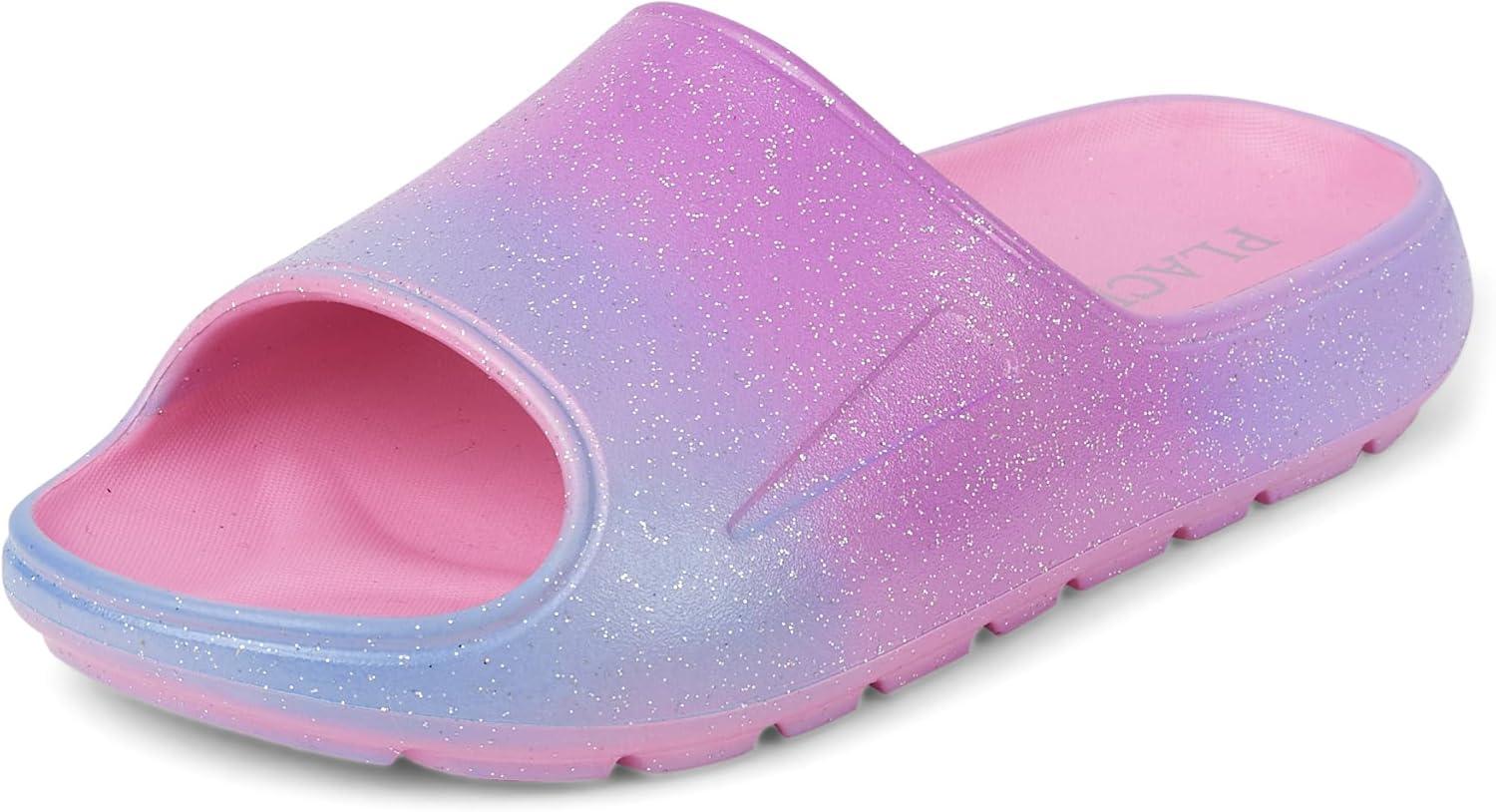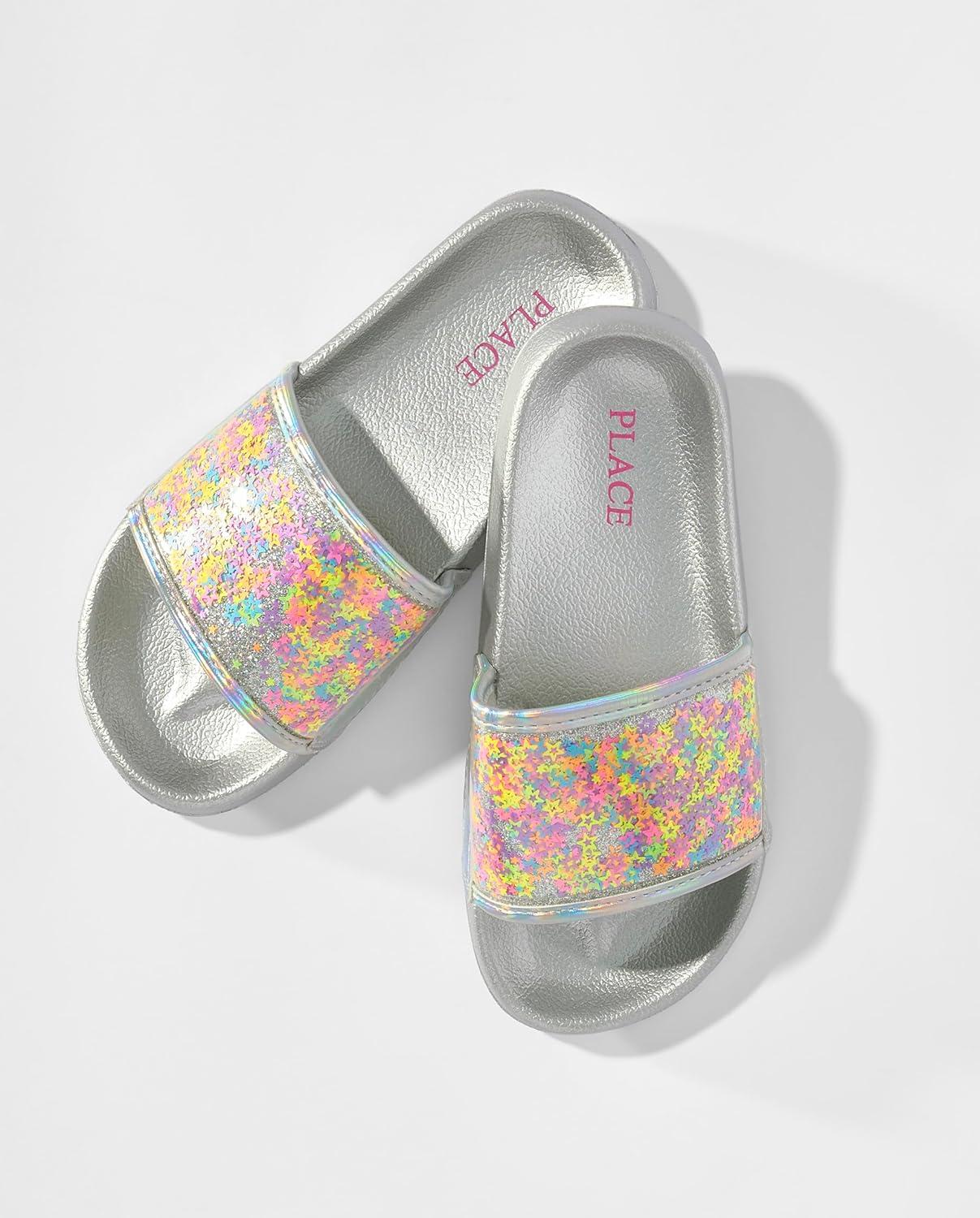 The Children’s Place Girls Everday Slip on Slide Sandals(Glitter Waves)