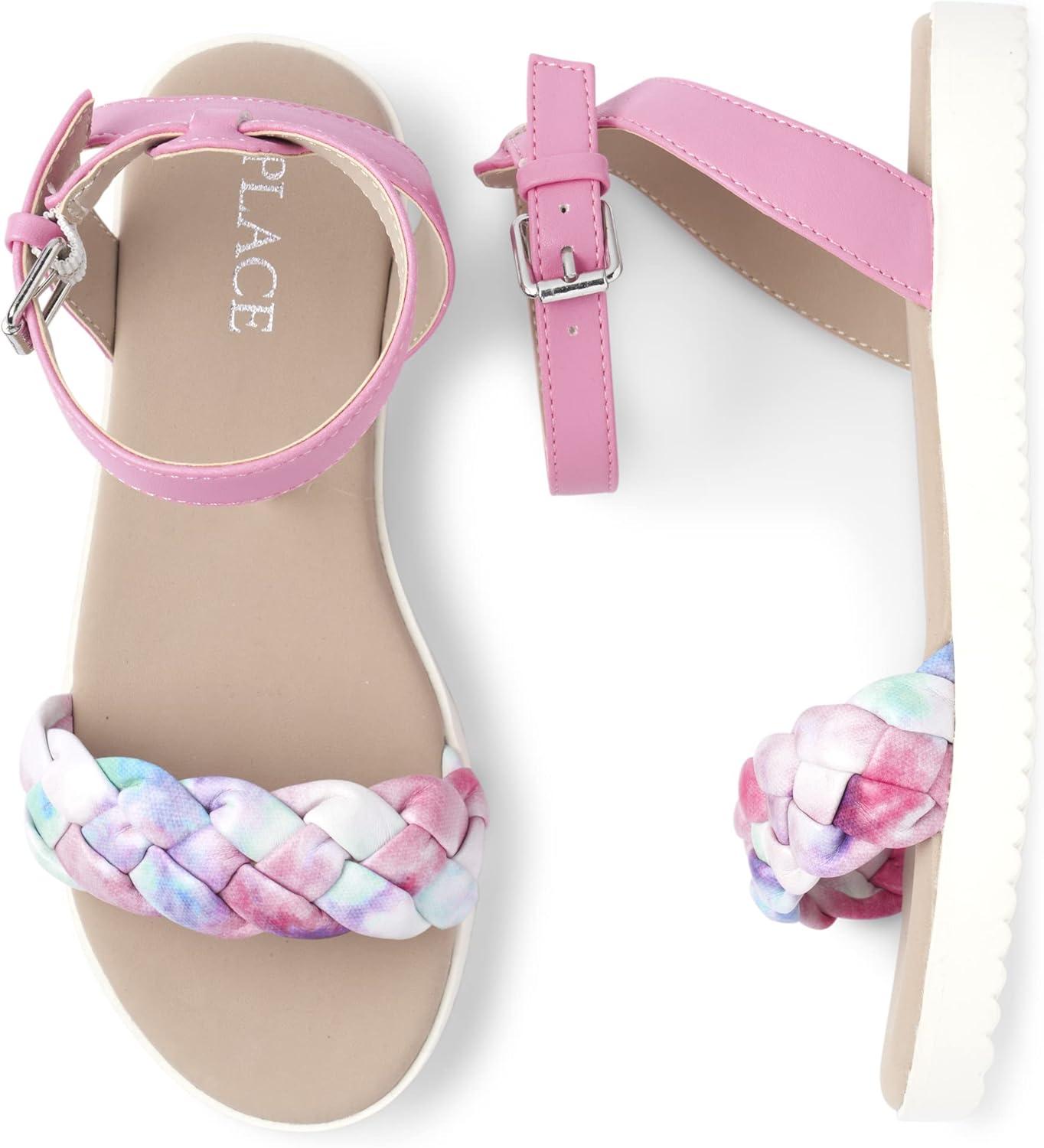 The Children’s Place Girls Flat Sandals with Adjustable Ankle Strap(Pastel Multicolor Braid)