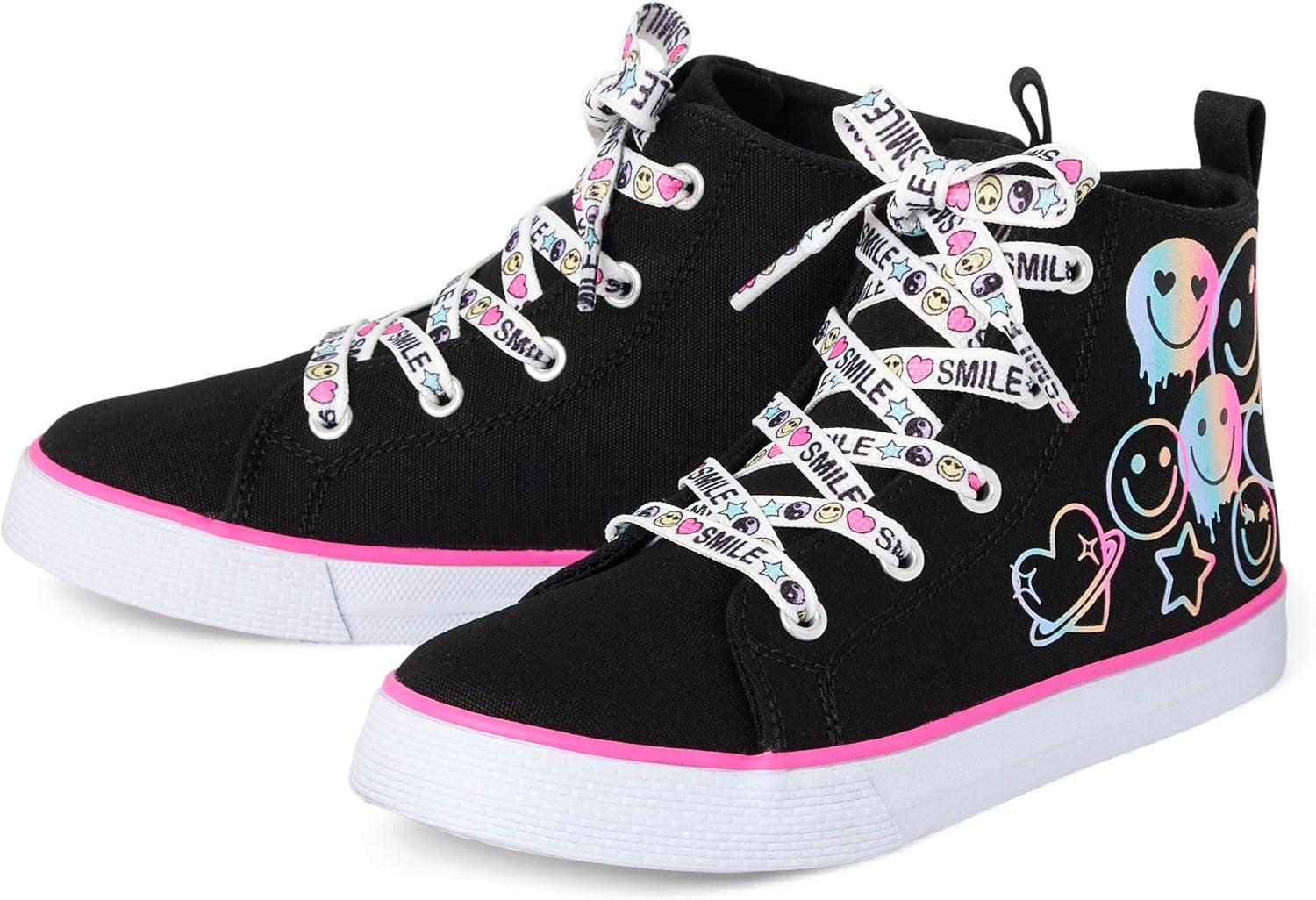The Children’s Place Girls Girls Casual Lace Up Hi Top Sneakers(Doodle Icons)