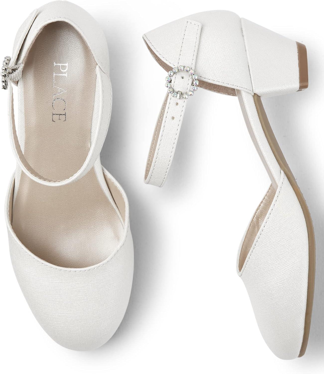 The Children’s Place Girls Girls Low Heel Dress Pumps(White Shimmer)