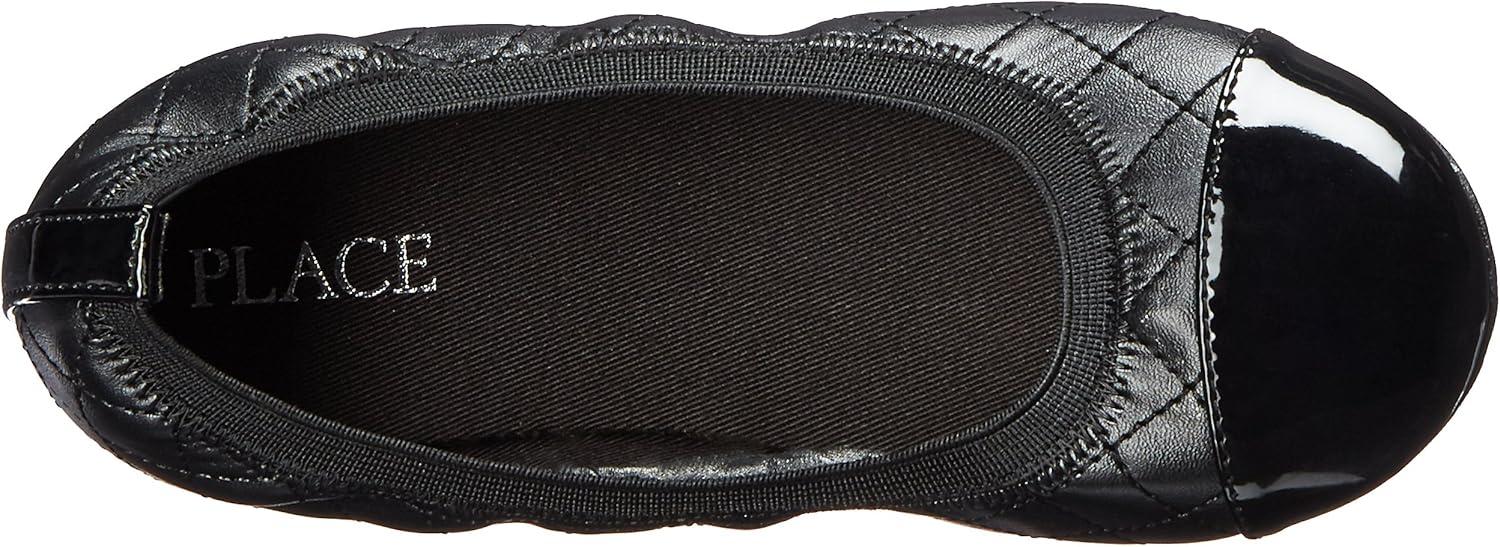 The Children’s Place Girls Kayla Velvet Flat Shoe Shoe(Black Quilted)