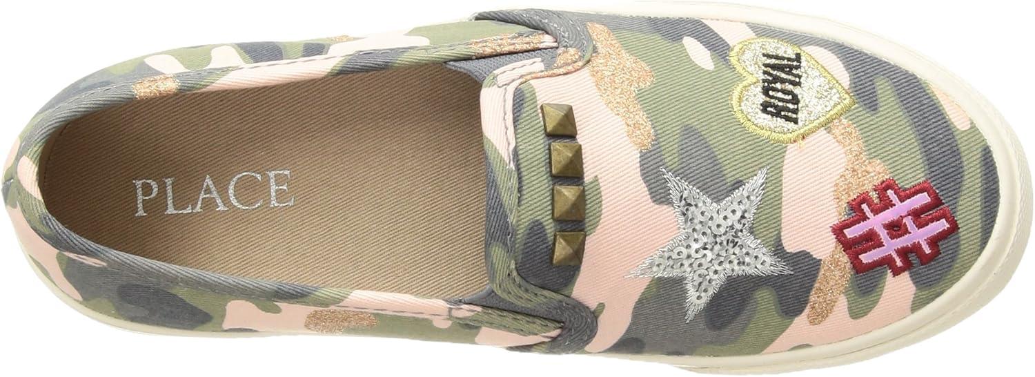The Children’s Place Girls Kayla Velvet Flat Shoe Shoe(Camo-bg Camo Slipon)