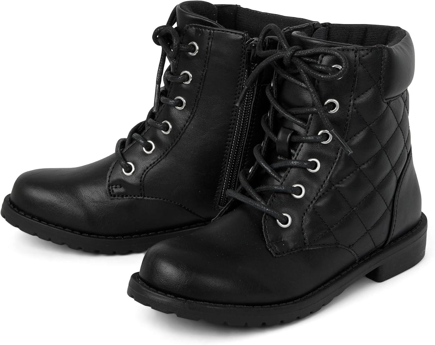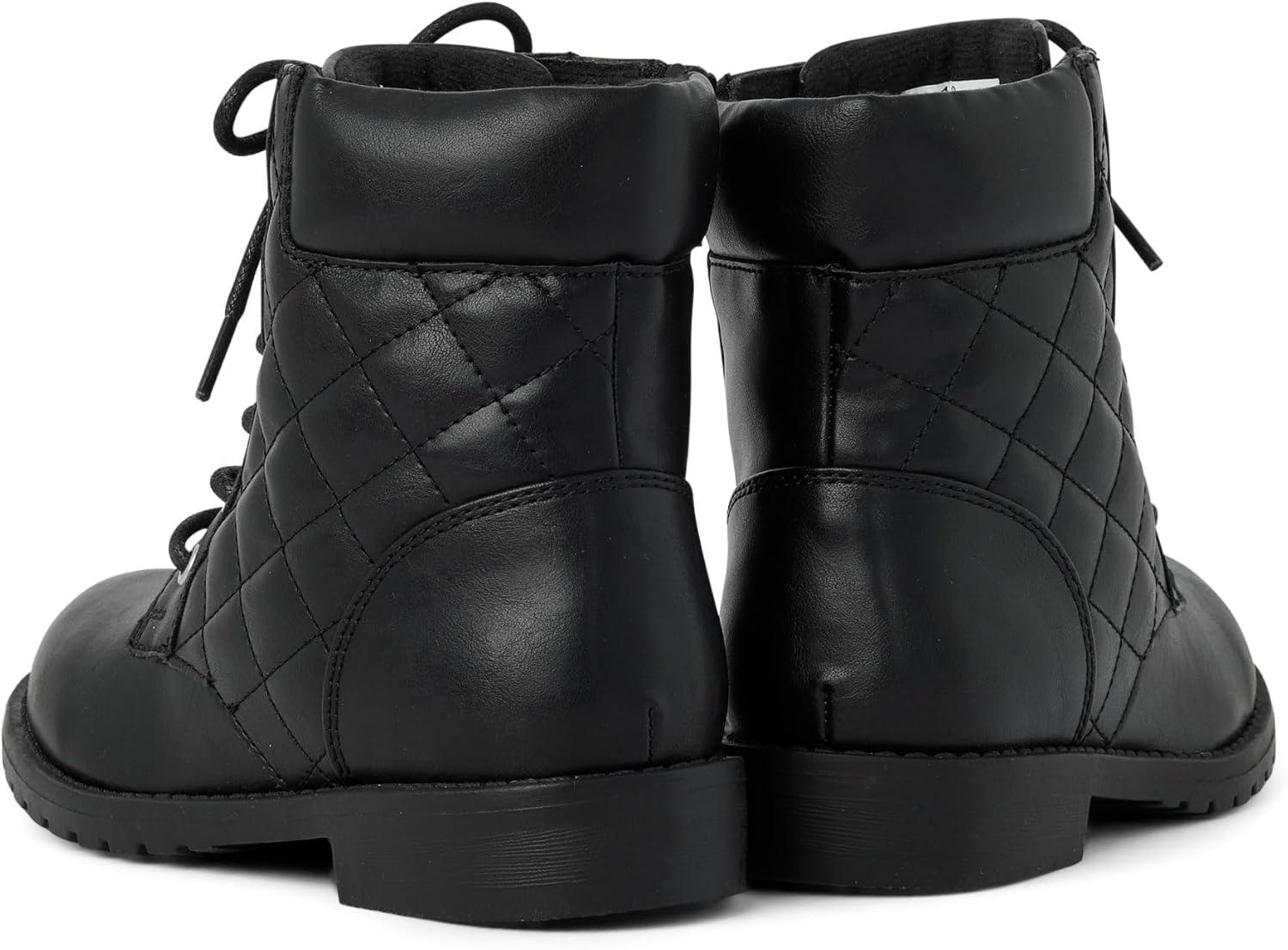 The Children’s Place girls Girls Lace Up Combat Boots(Black Quilted)