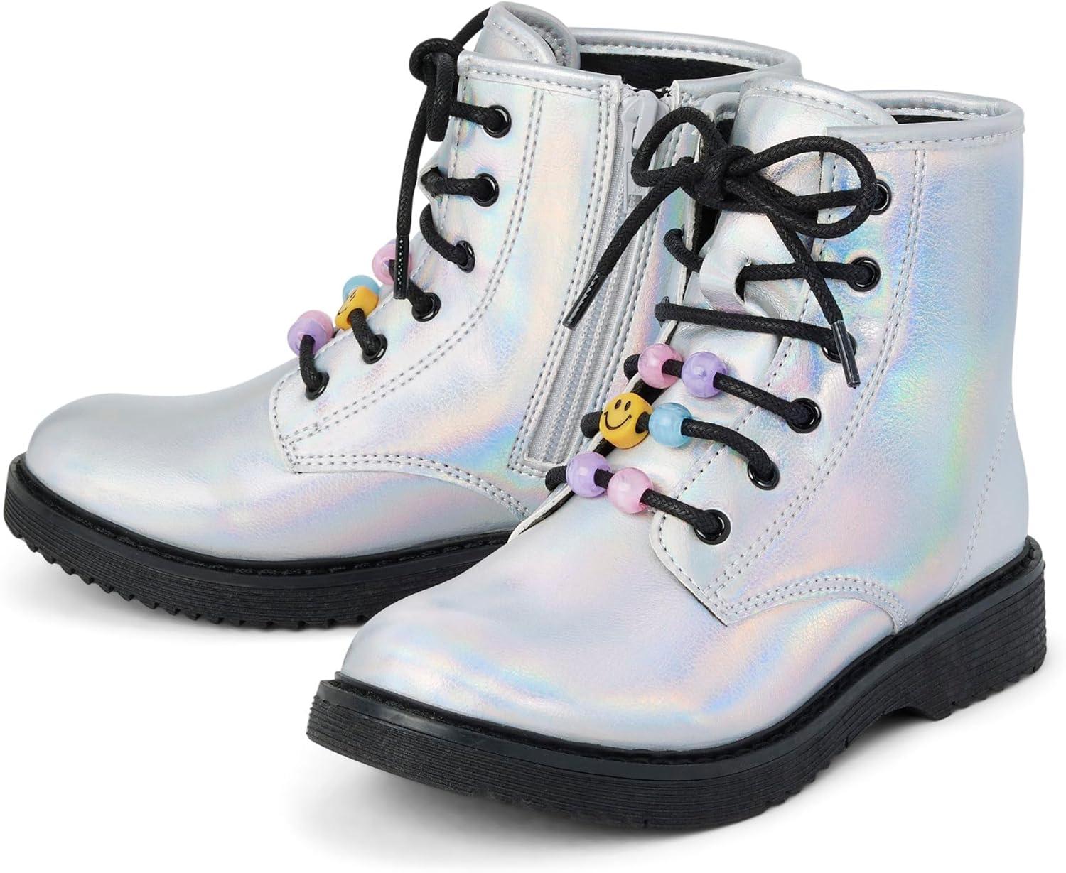 The Children’s Place girls Girls Lace Up Combat Boots(Metallic Silver)