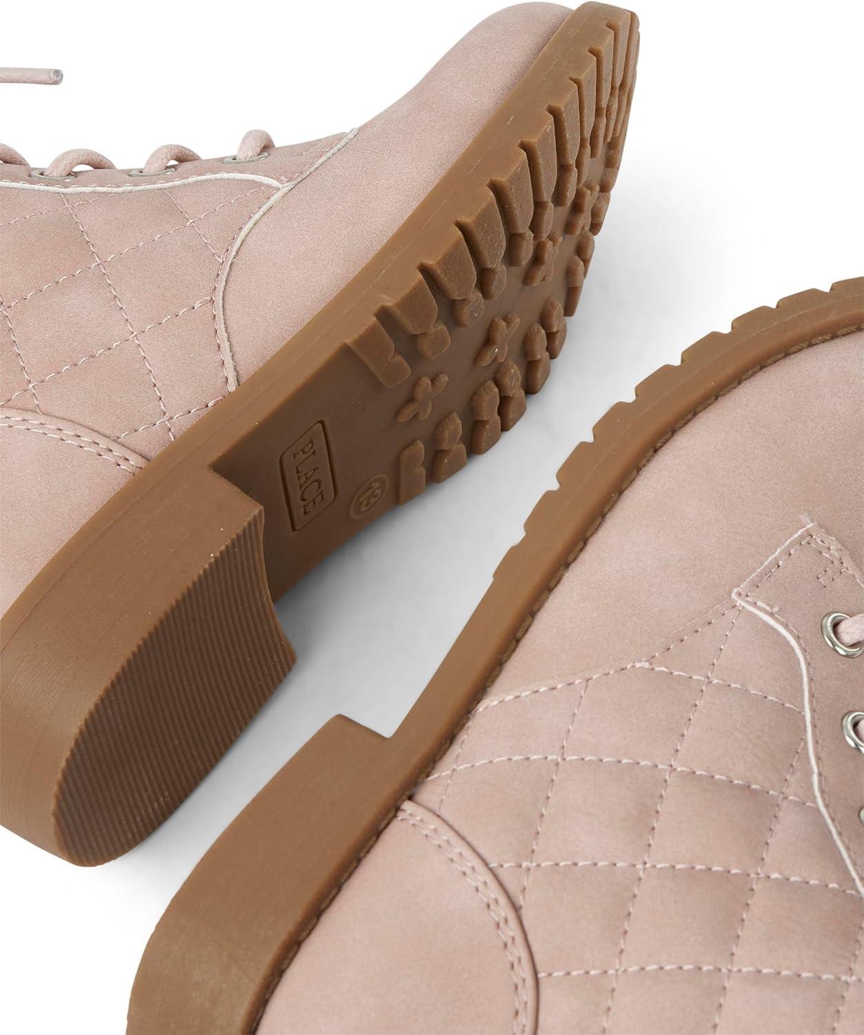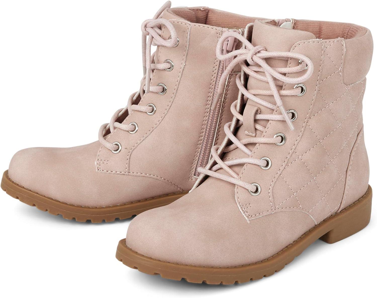 The Children’s Place girls Girls Lace Up Combat Boots(Pink Quilted)