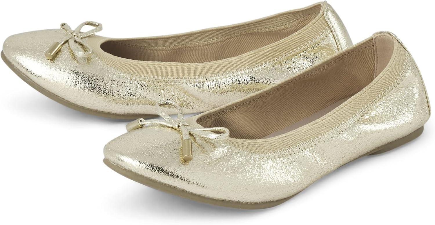 The Children’s Place Girls’ Closed Toe Ballet Flat(Metallic Gold Bow)