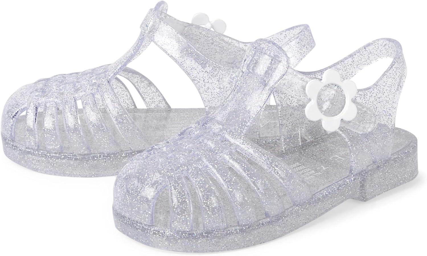 The Children’s Place girls Girls Jelly Fisherman Sandals(Clear Silver Glitter)
