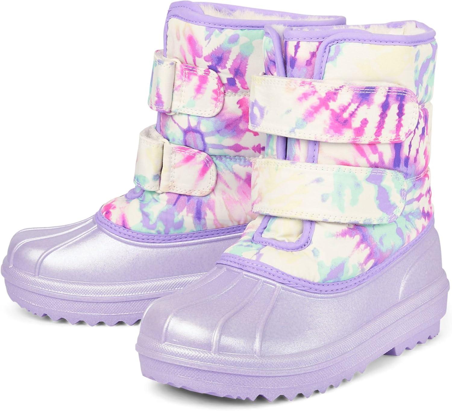 The Children’s Place Girls’ Faux Fur Trim Winter Snow Boots(Purple Cream Swirl)