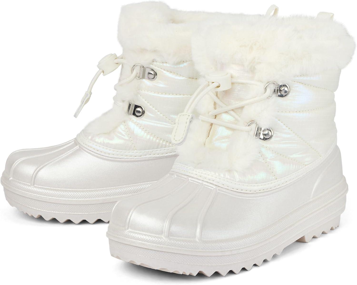 The Children’s Place Girls’ Faux Fur Trim Winter Snow Boots(White Toggle)
