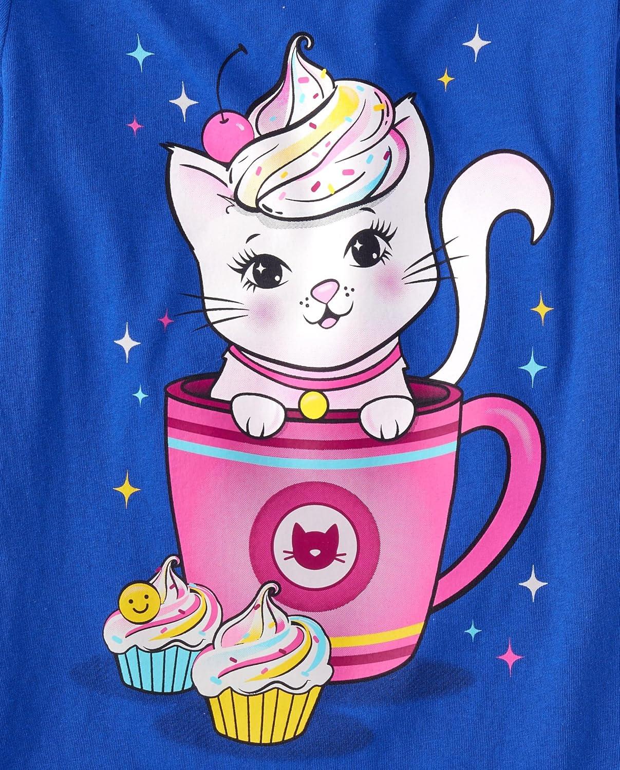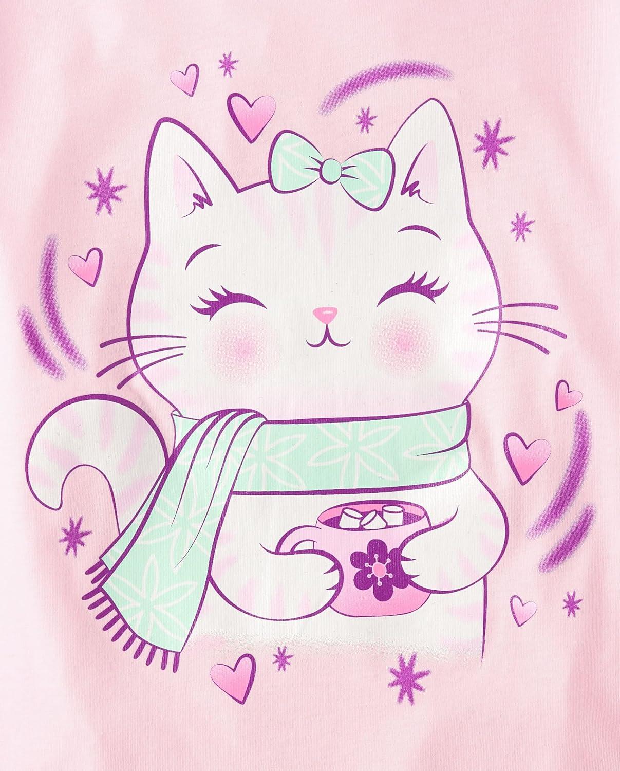 The Children’s Place Girls Unicorns,Sports,Butterflies Long Sleeve Graphic T-Shirts,2 Pack(Hot Cocoa Era/Cat Mug)