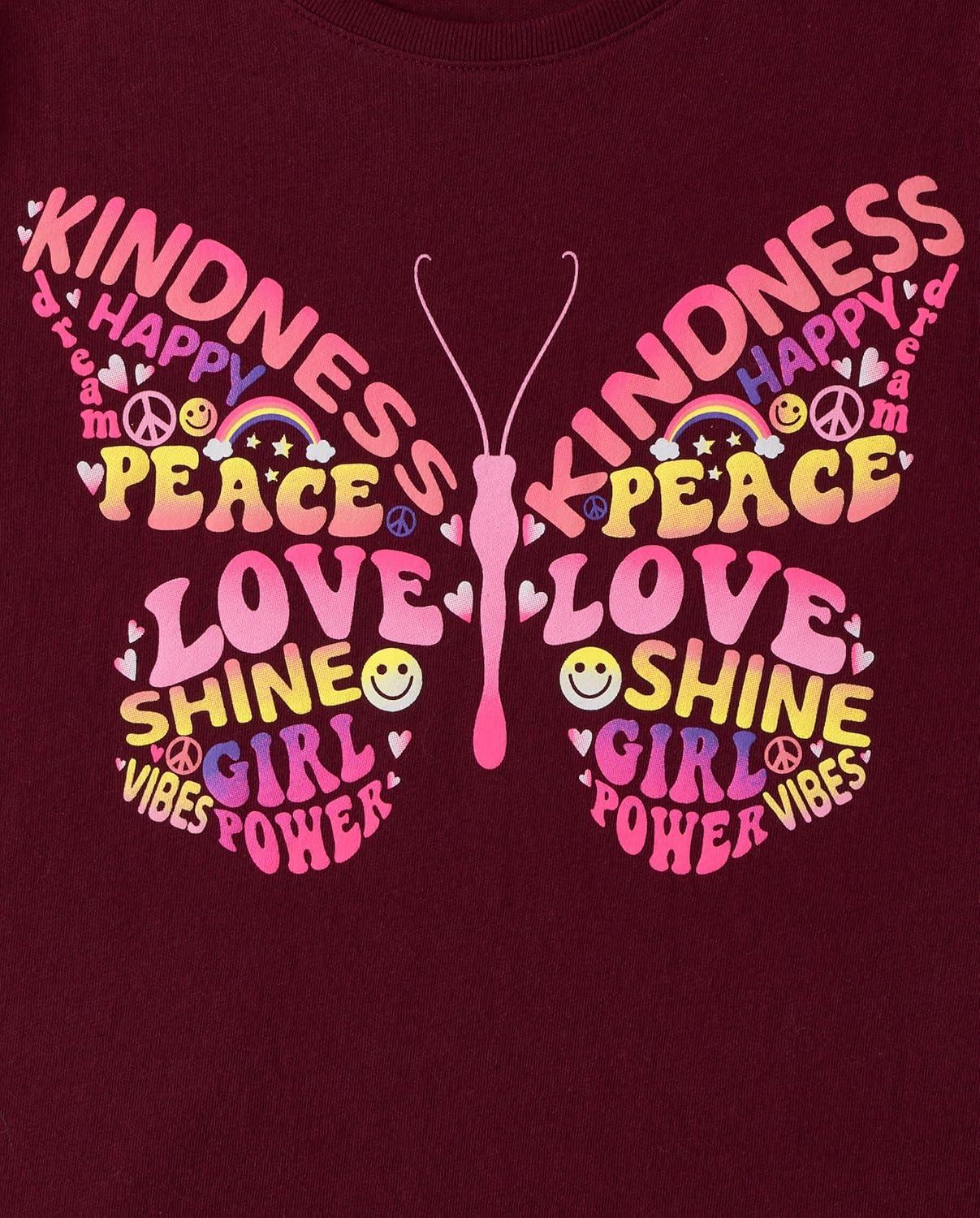 The Children’s Place Girls Unicorns,Sports,Butterflies Long Sleeve Graphic T-Shirts,2 Pack(Peace Love/Be Kind)