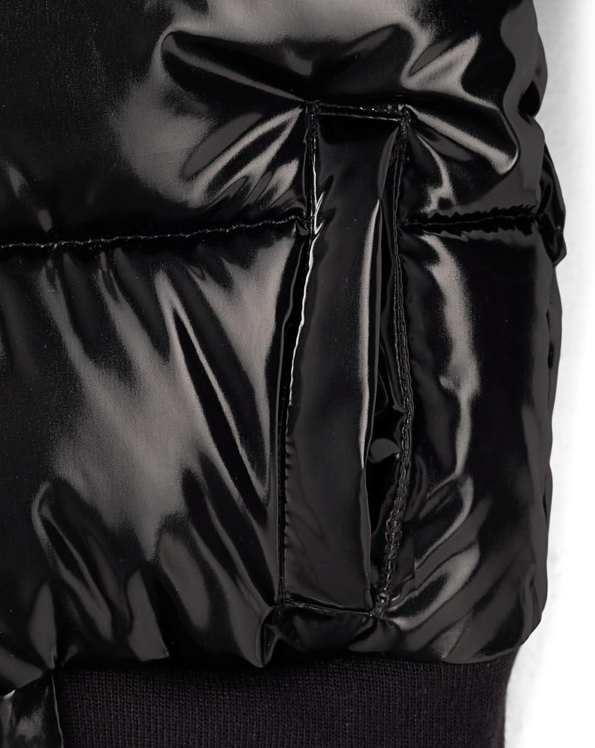 The Children’s Place girls Water and Wind Resistant Hooded Zip Front Bomber Puffer Jacket(Black)