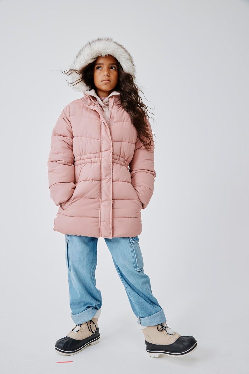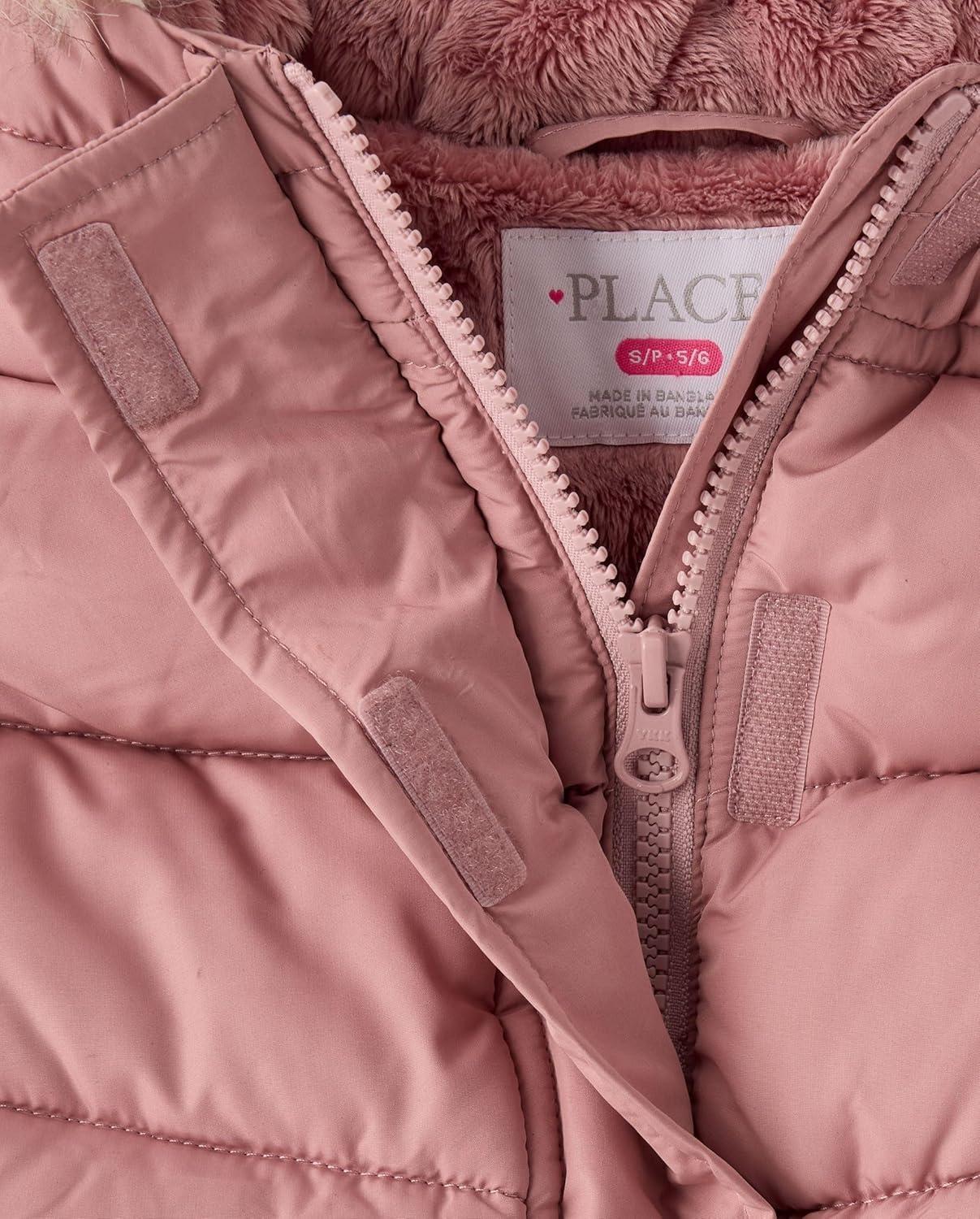 The Children’s Place girls Water and Wind Resistant Hooded Zip Front Mid Length Puffer Jacket, Faux Fur Lined(Precious Pink)