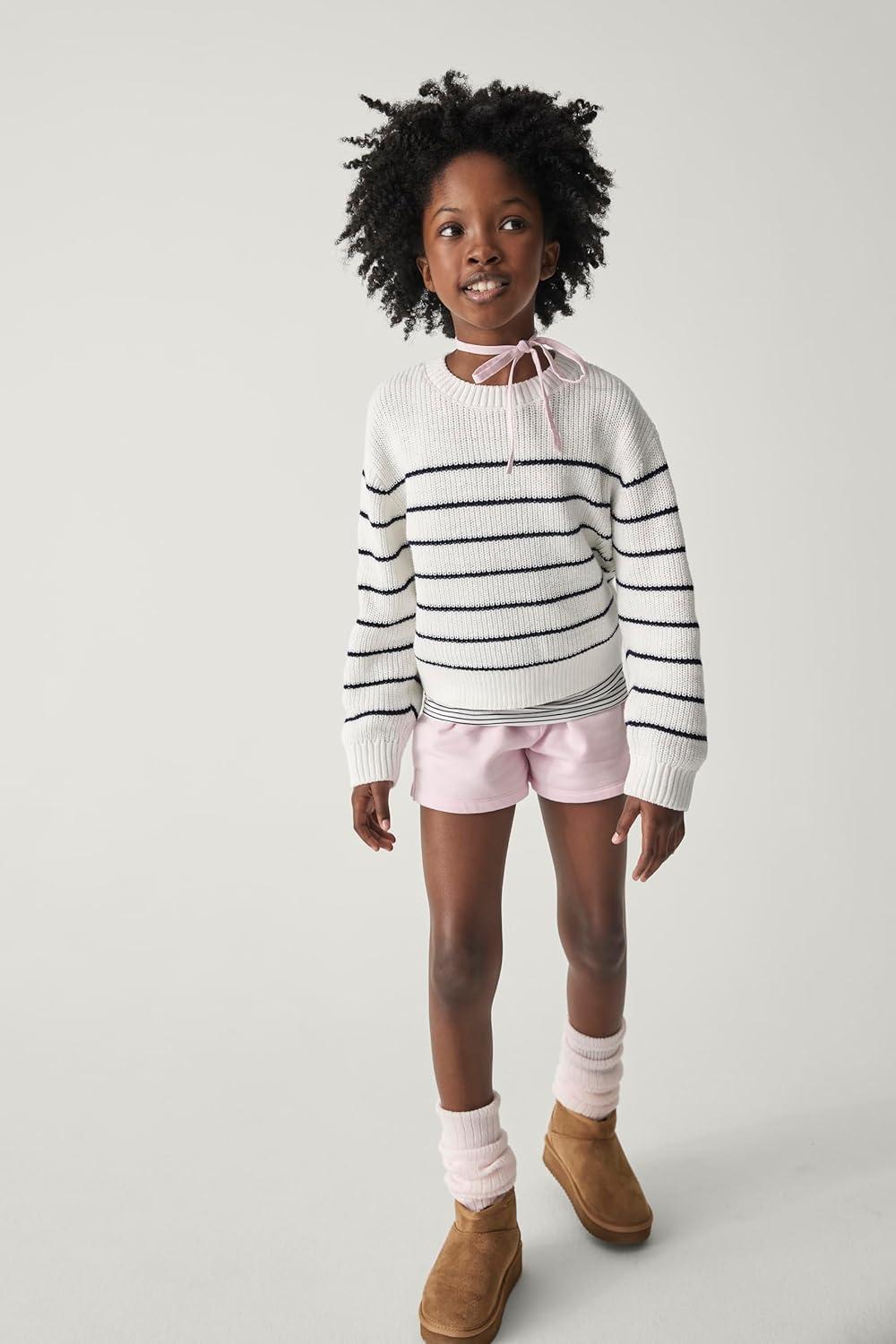 The Children’s Place Girls Long Sleeve Crew Neck Pullover Sweater(Bunny Tail Stripe)