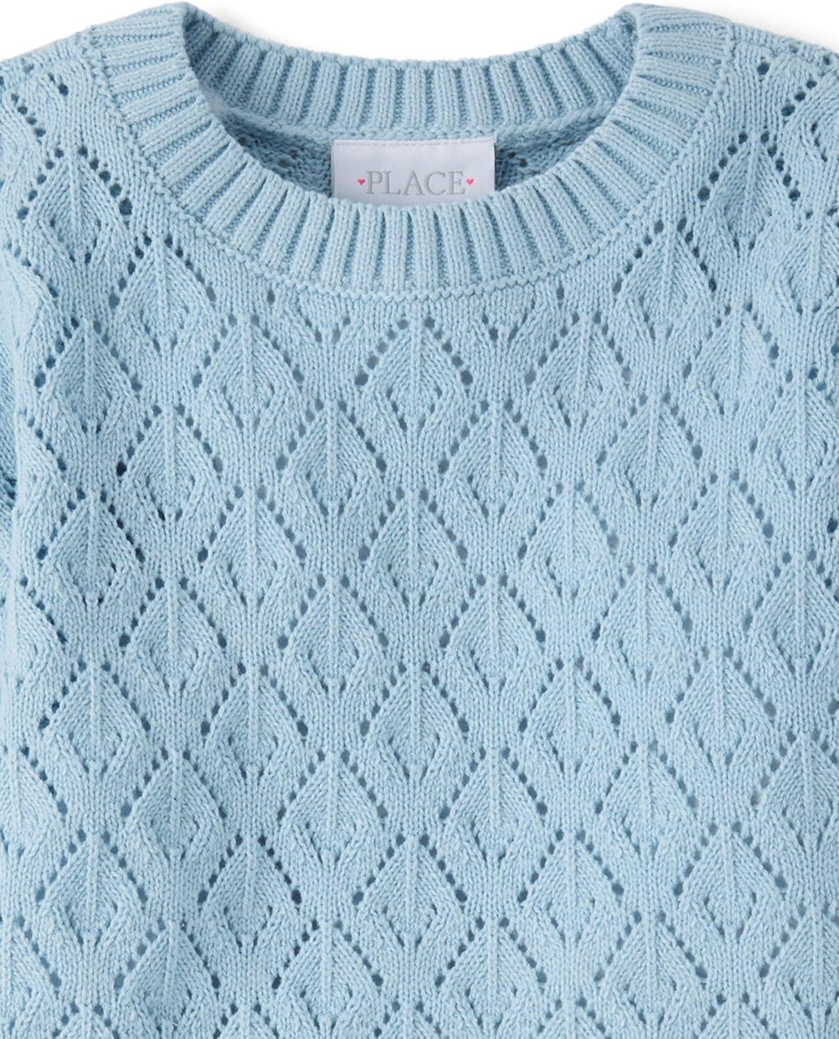 The Children’s Place Girls Long Sleeve Crew Neck Pullover Sweater(Chalk Blue Crochet)
