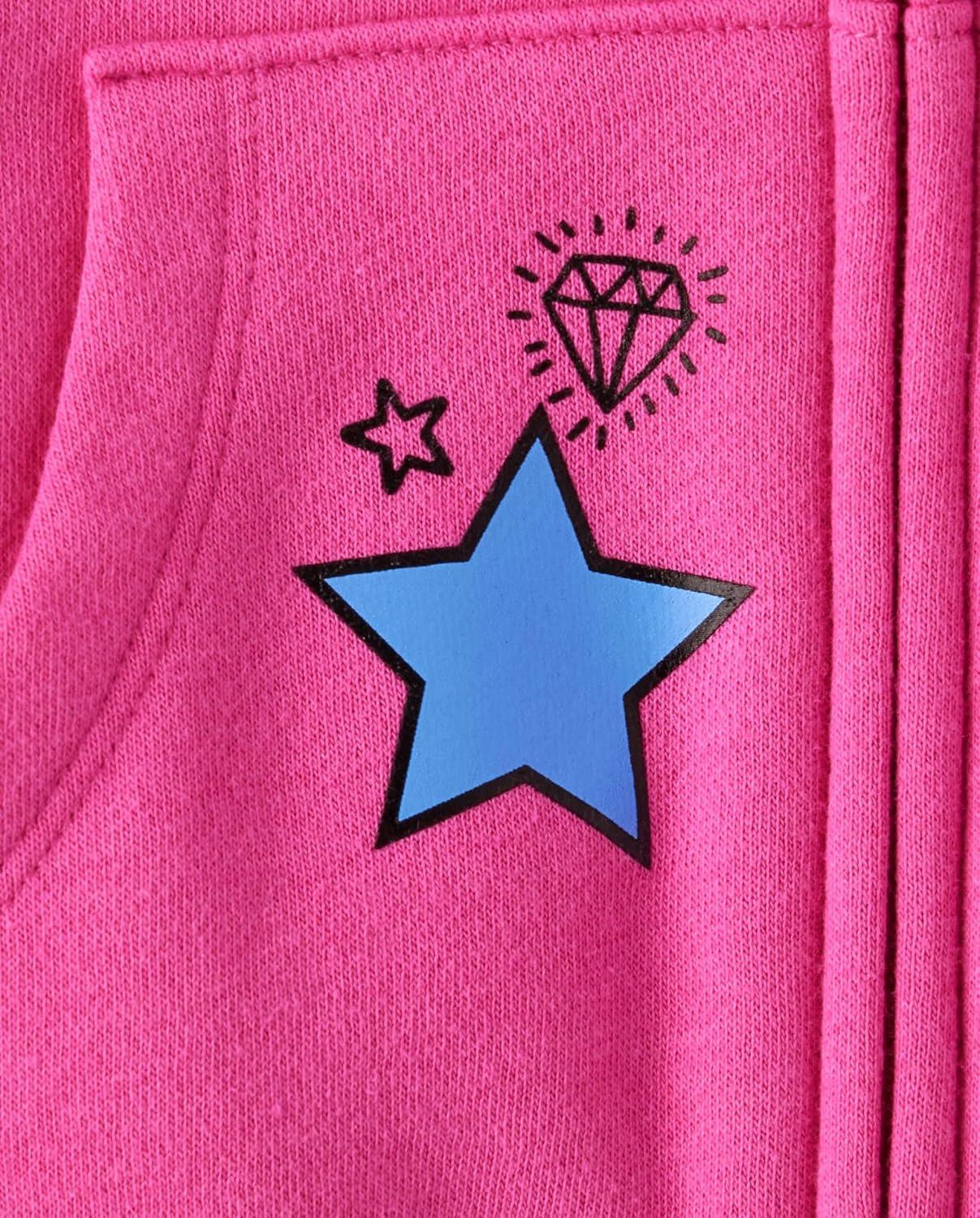 The Children’s Place girls Long Sleeve Hooded Fleece Full Zip Up(Fall Fuschia Graphic)