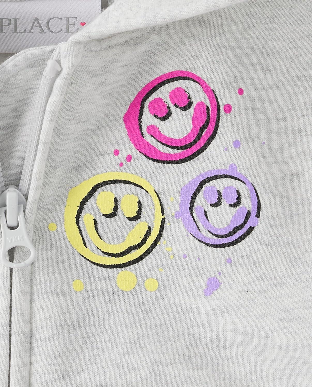 The Children’s Place girls Long Sleeve Hooded Fleece Full Zip Up(Happy Vibes)