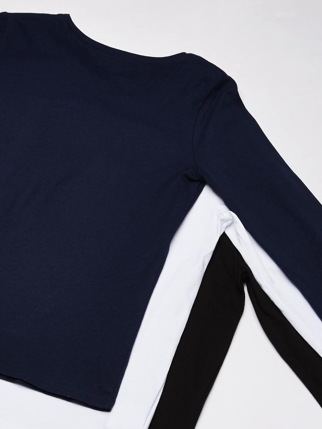 The Children’s Place Girls Basic Long Sleeve Layering Tees(Black/Tidal/White 3-pack)