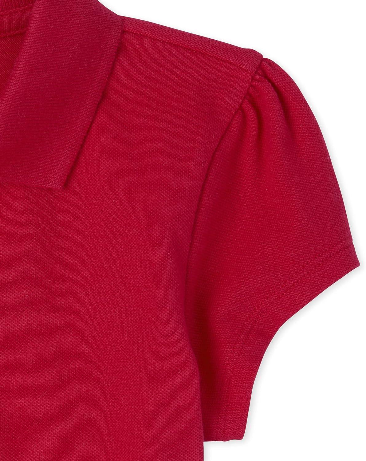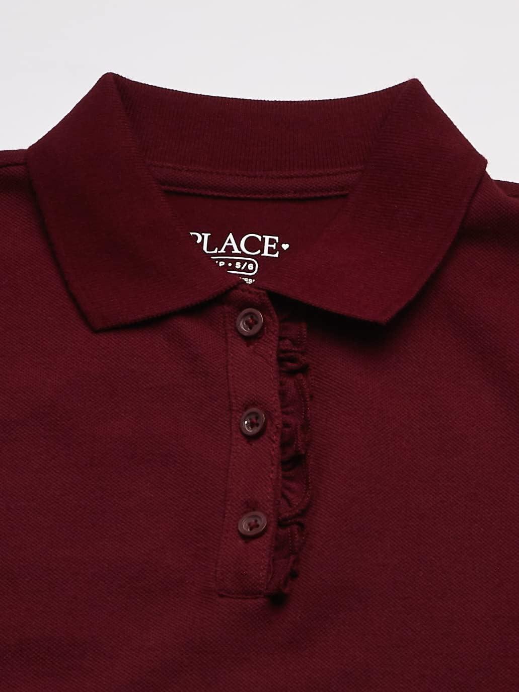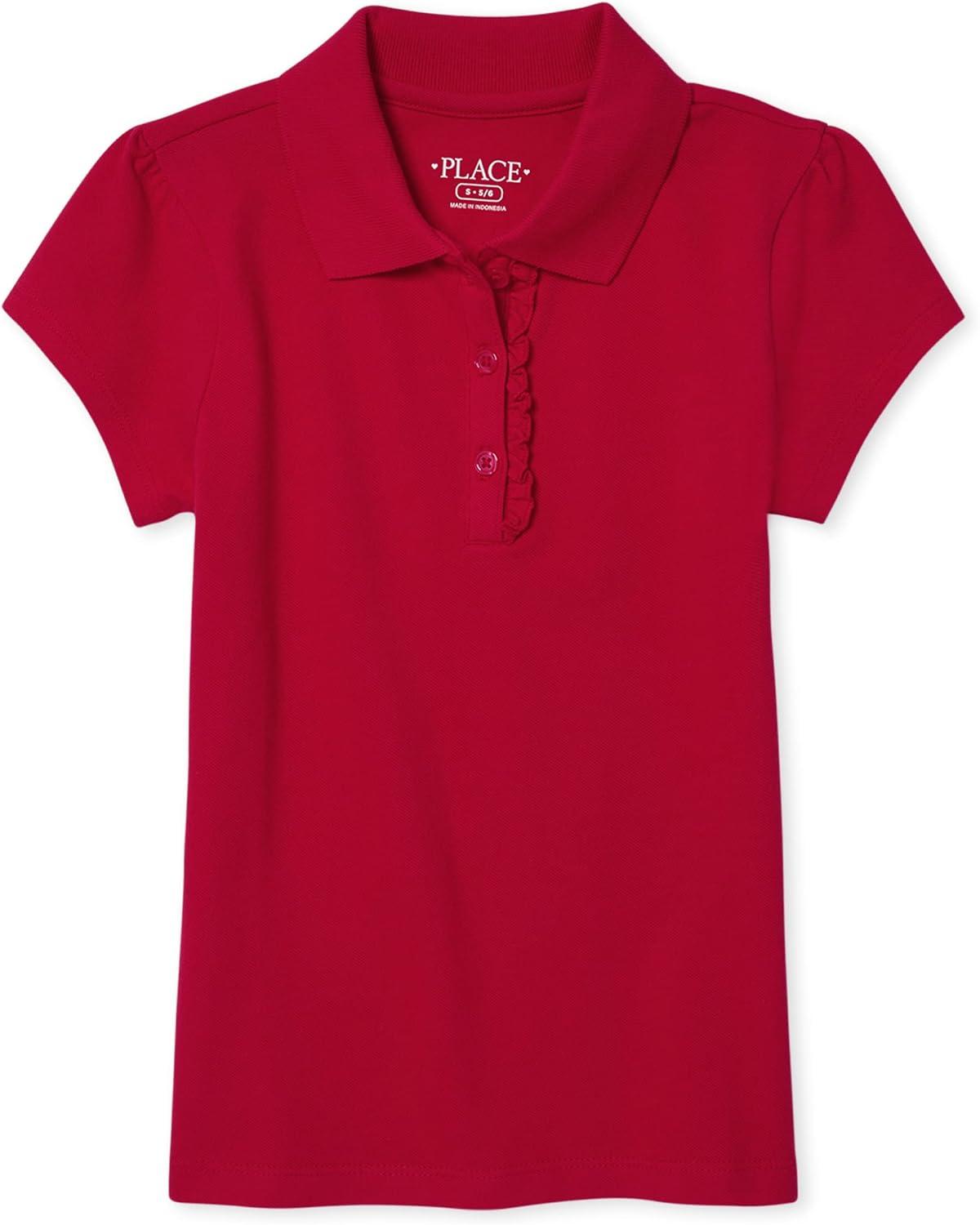 The Children’s Place Girl’s Short Sleeve Ruffle Pique Polo Shirt(Ruby)