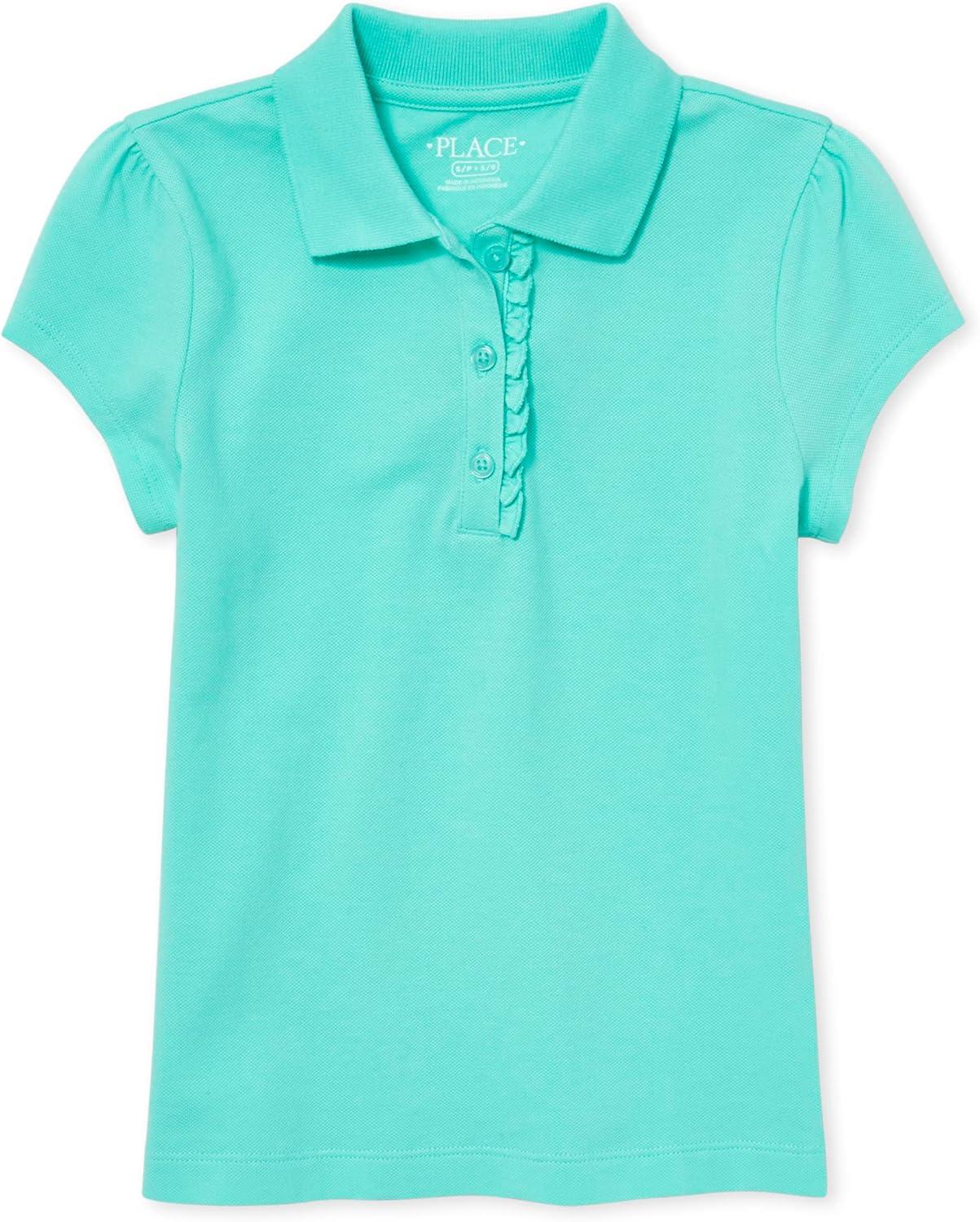 The Children’s Place Girl’s Short Sleeve Ruffle Pique Polo Shirt(Tidal)
