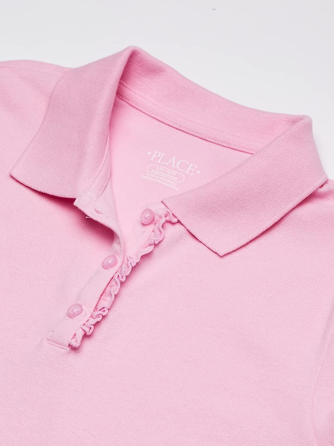 The Children’s Place Girl’s Short Sleeve Ruffle Pique Polo Shirt(Sparkle Pink)