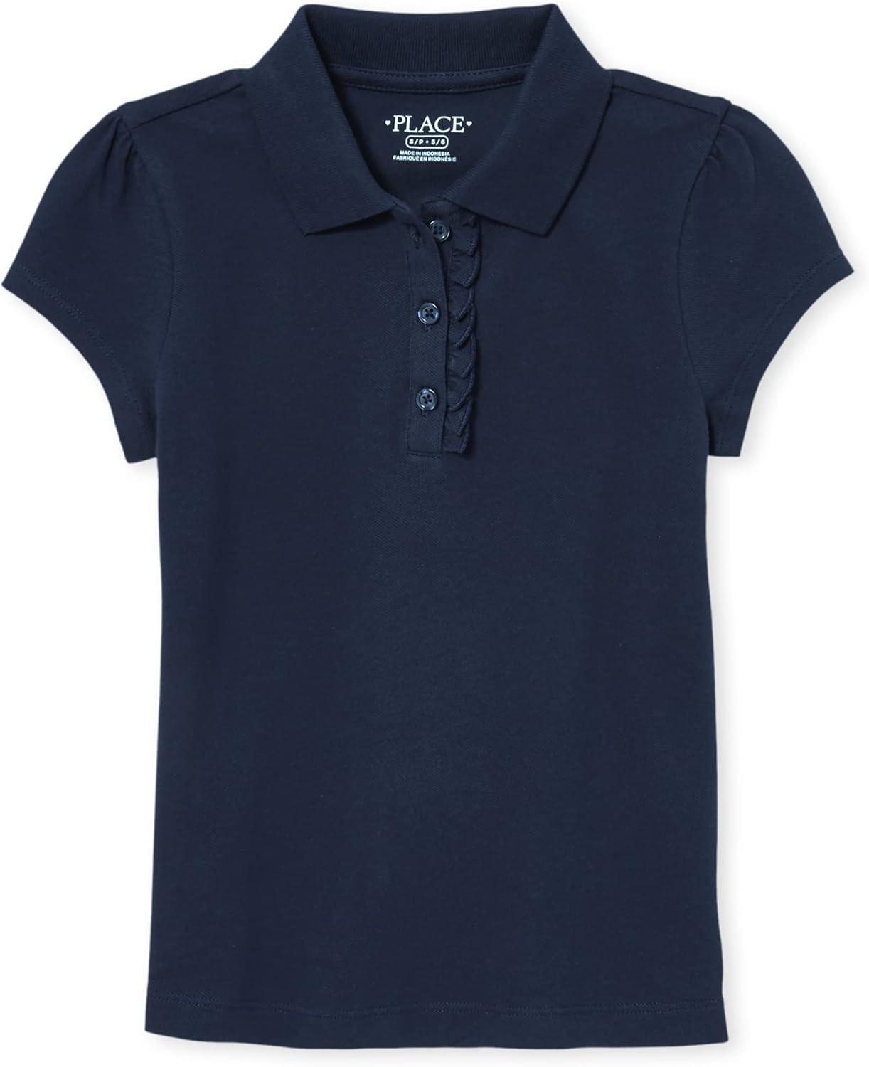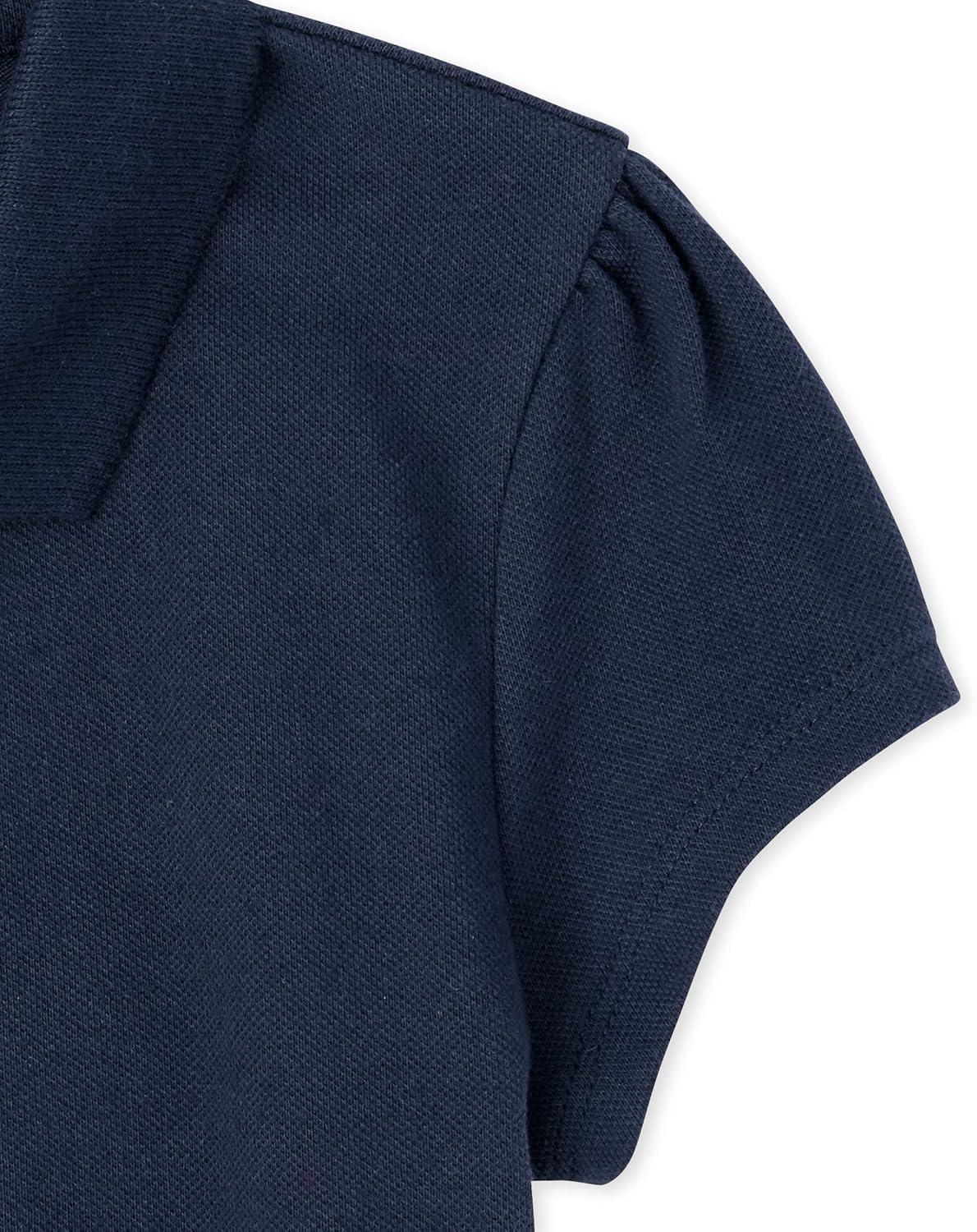 The Children’s Place Girl’s Short Sleeve Ruffle Pique Polo Shirt(Renew Blue)