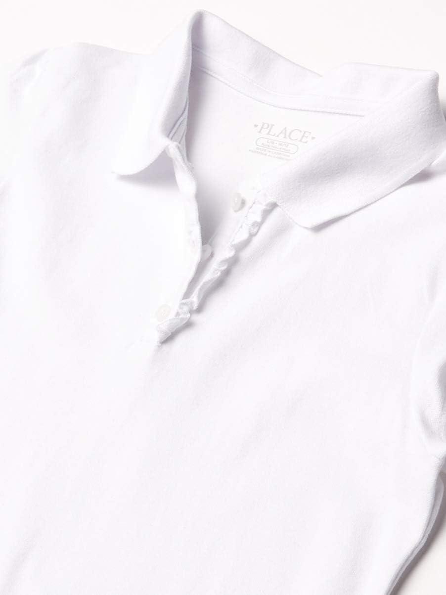 The Children’s Place Girl’s Short Sleeve Ruffle Pique Polo Shirt(White)