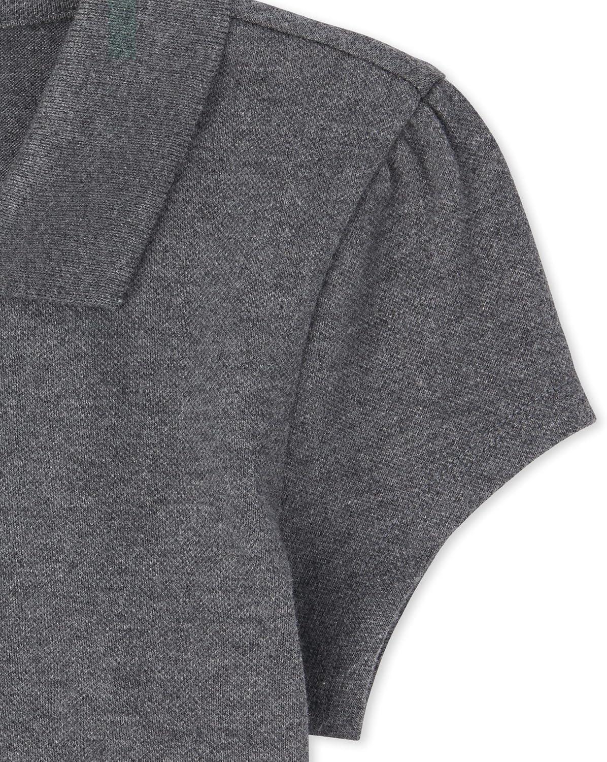 The Children’s Place Girls Short Sleeve Ruffle Pique Polo(Dk Heather Grey)