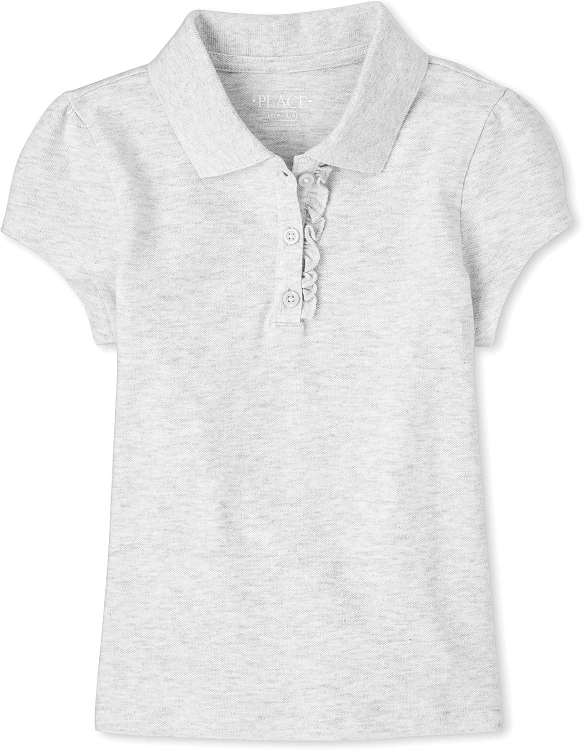 The Children’s Place Girls Short Sleeve Ruffle Pique Polo(Heather Grey Single)