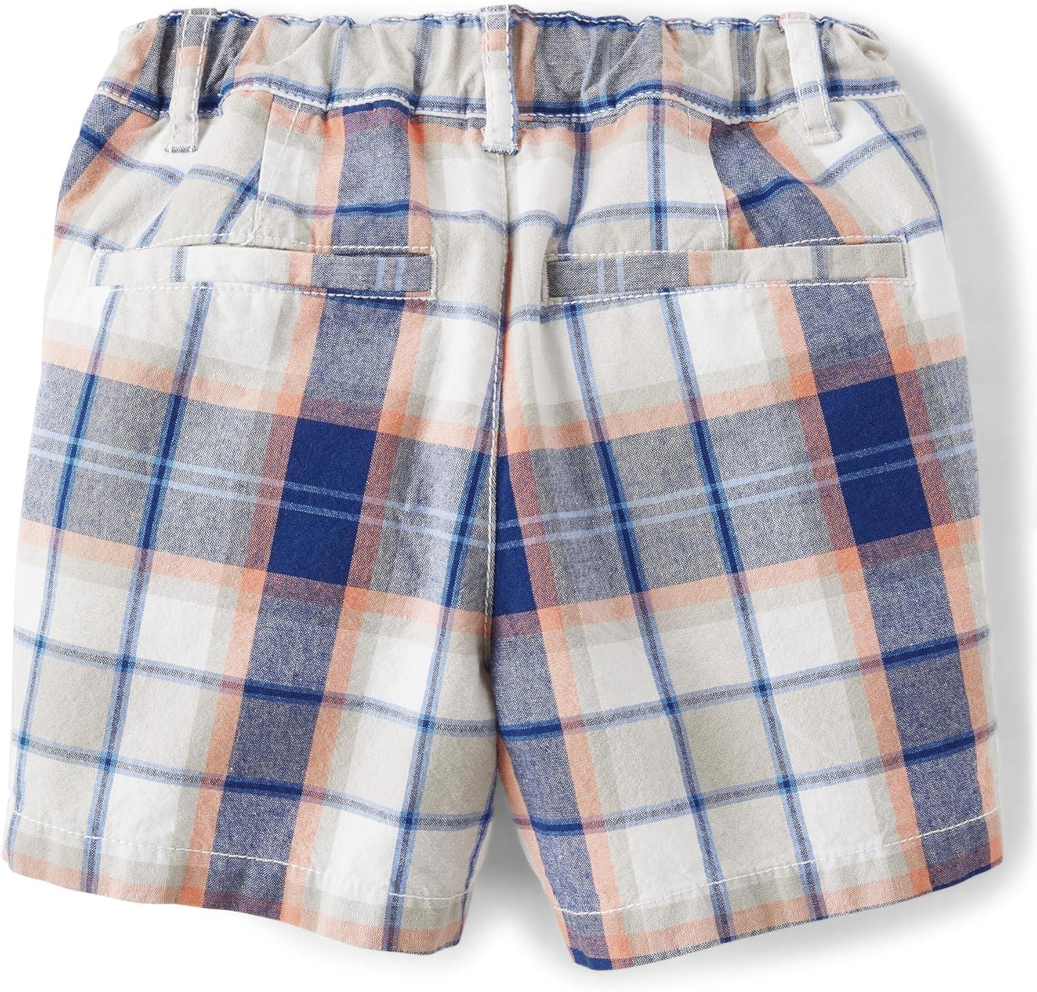 The Children’s Place Baby Boys Chino Shorts(Blue/Orange Plaid)
