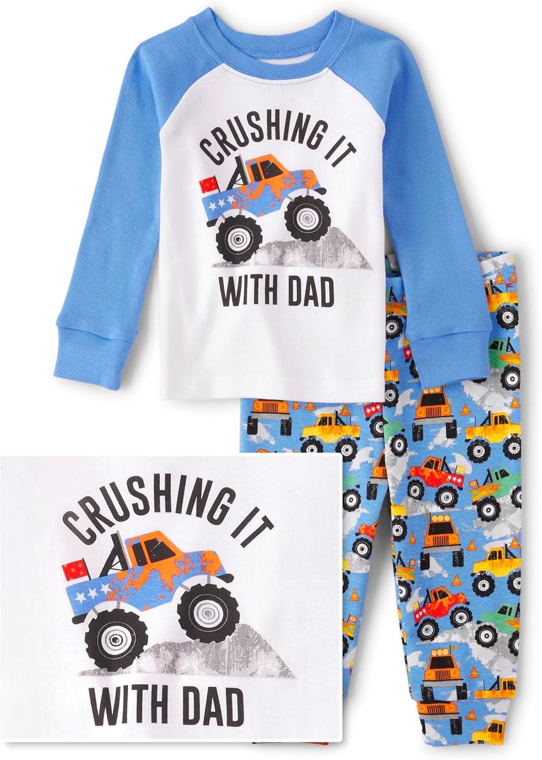 • The Children’s Place baby boys Button Long Sleeve Top and Pants Snug Fit 100% Cotton 2 Piece Pajama Set(Crushing It With Dad)